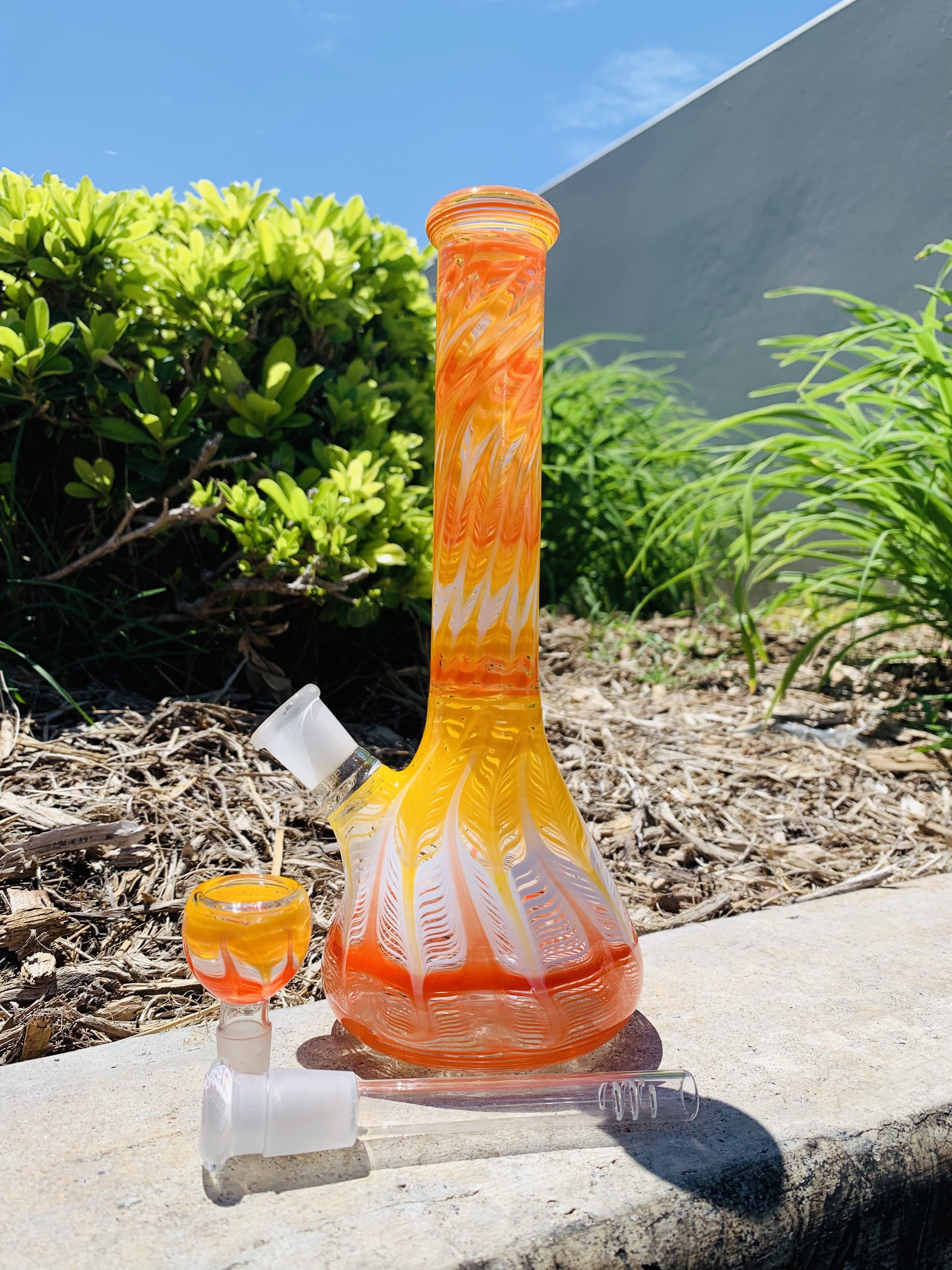 Smoke luxuriously with our beautiful Orange Crush beaker base 10-inch designer bong! This is the perfect bong for an active smoker whether it be yourself or a close smoker friend, this bong is sure to last through sesh after sesh!