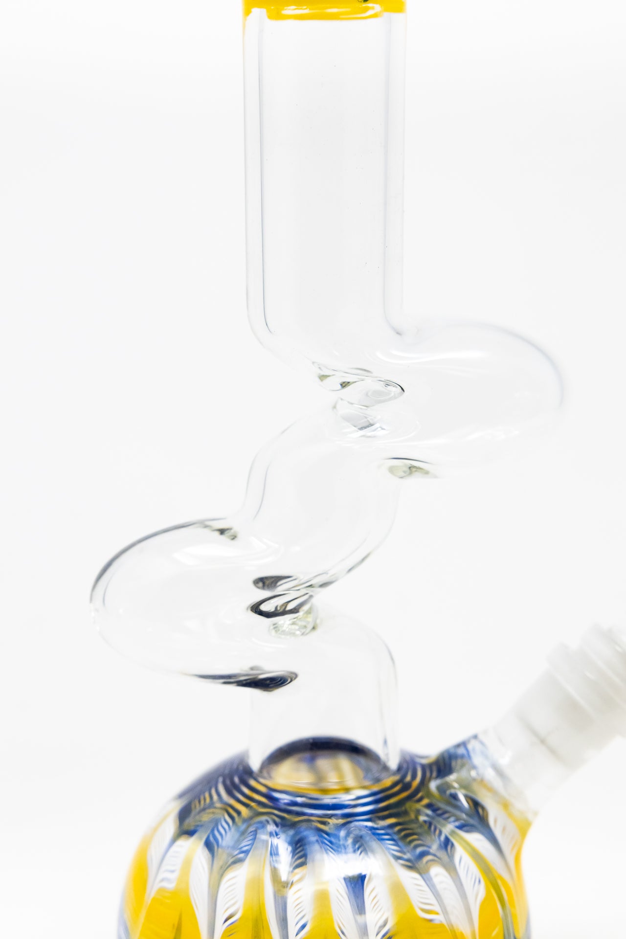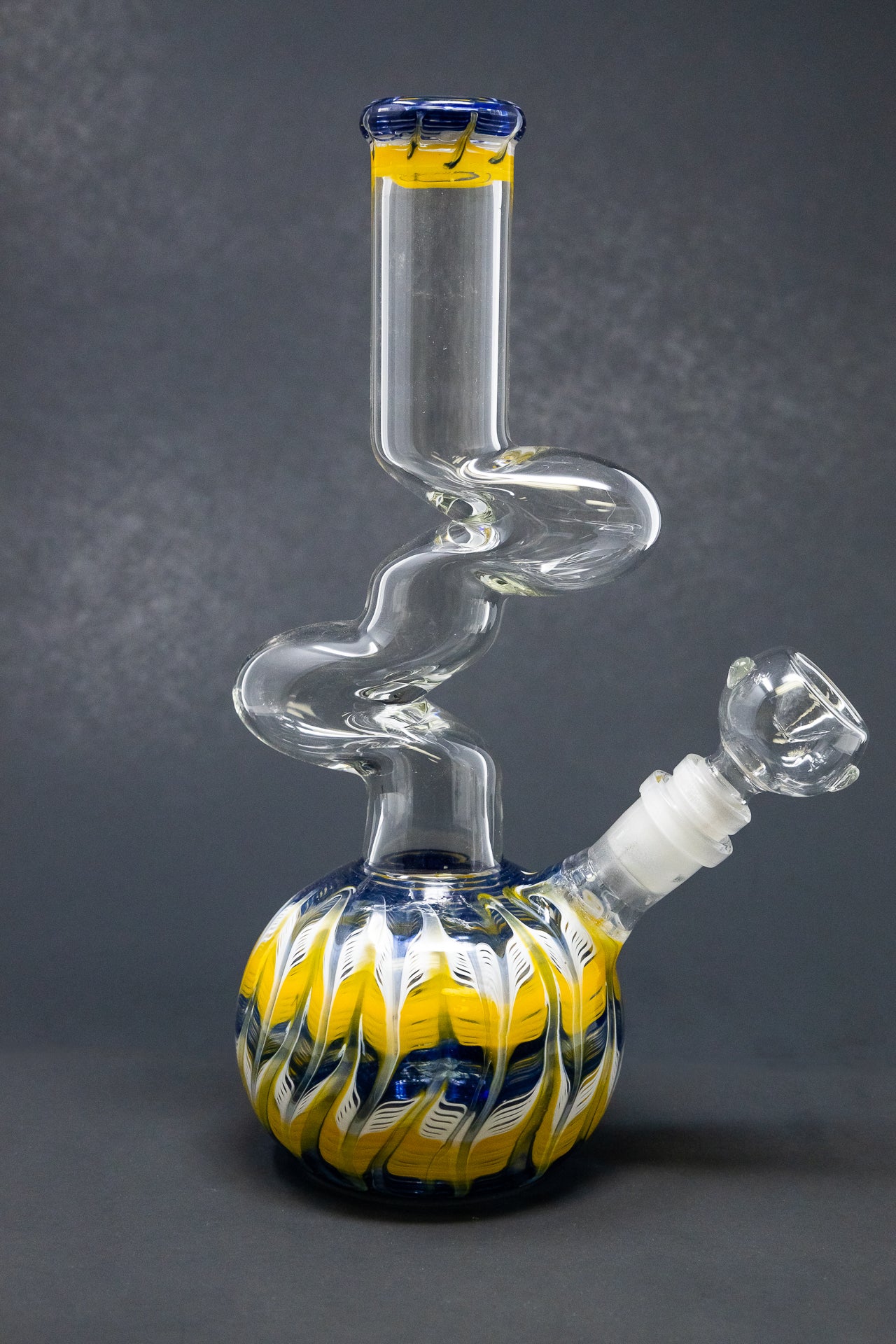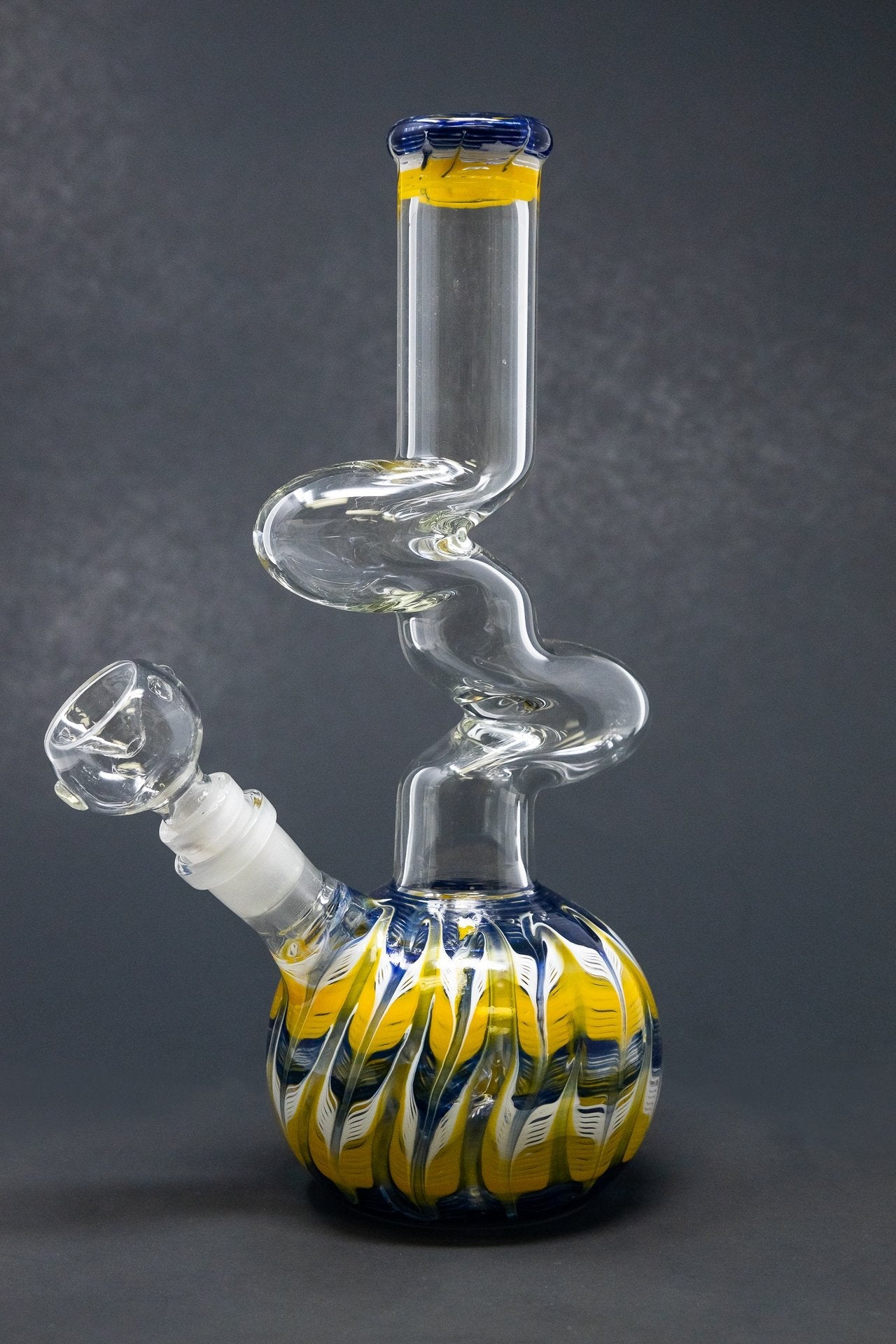 This groovy Blue & Yellow bong is sure to put any smoker it comes across in a trance with its beautiful designer pattern and amazingly vibrant colors.