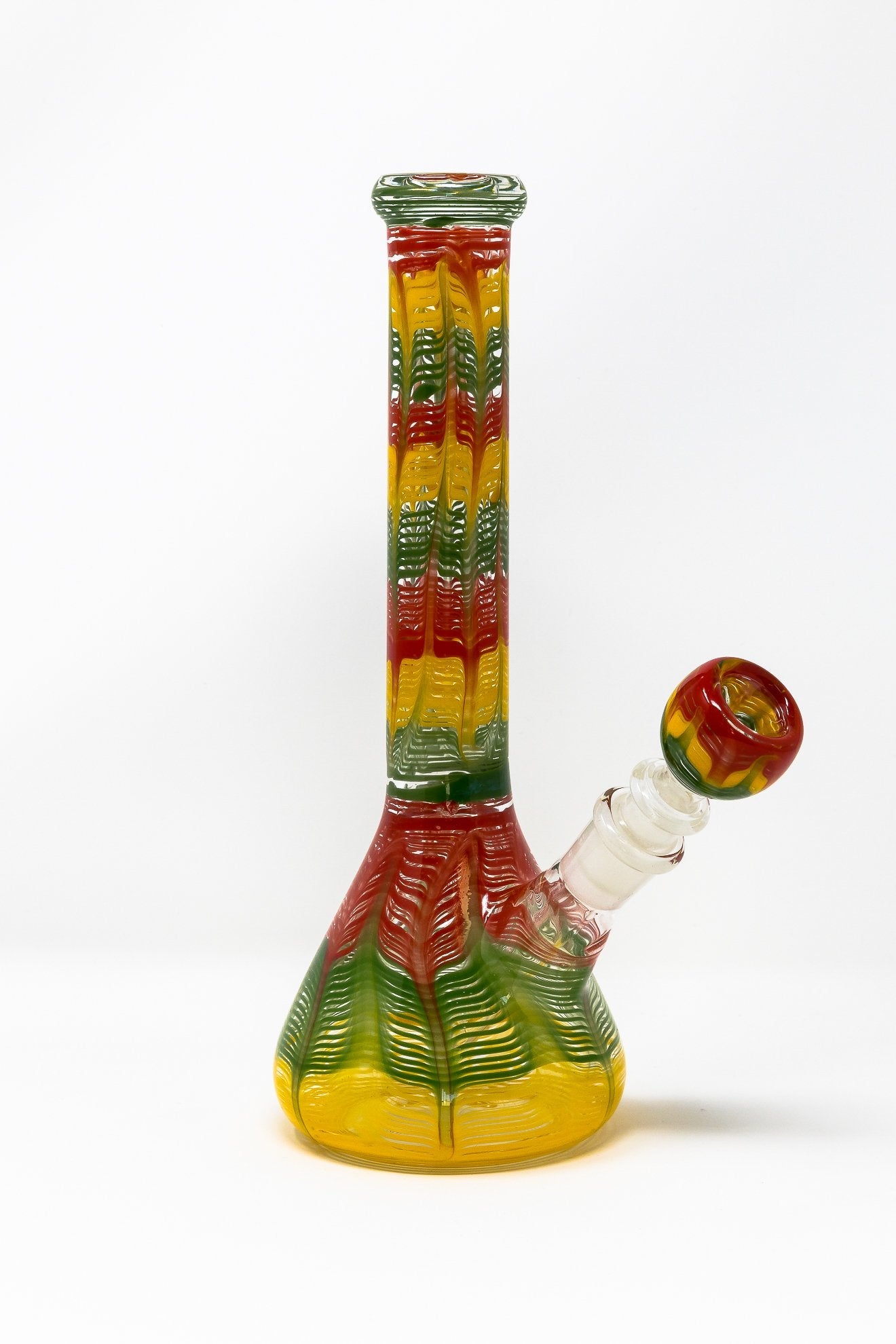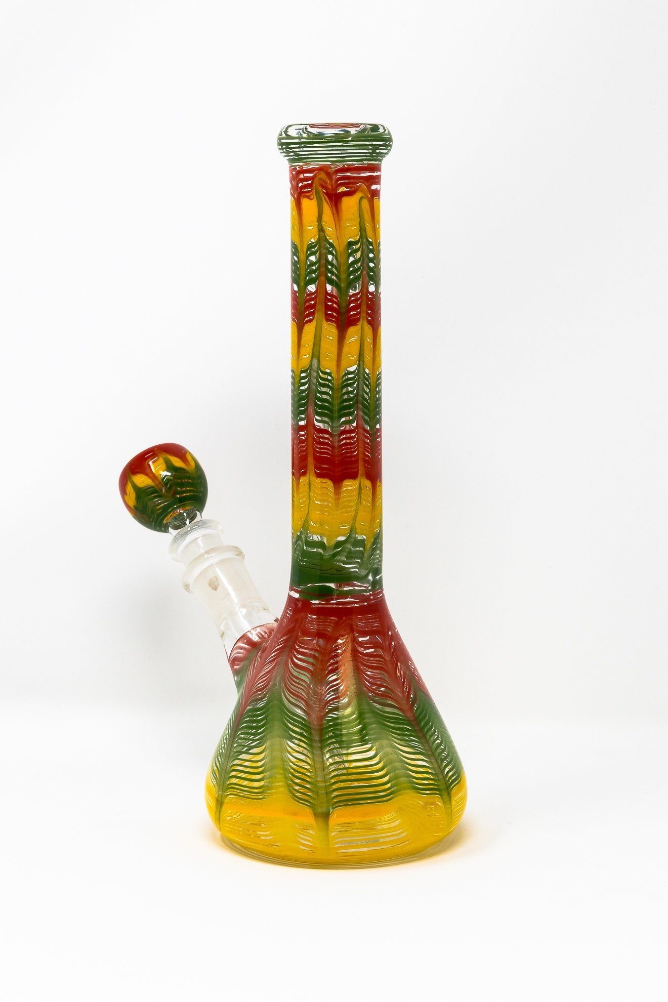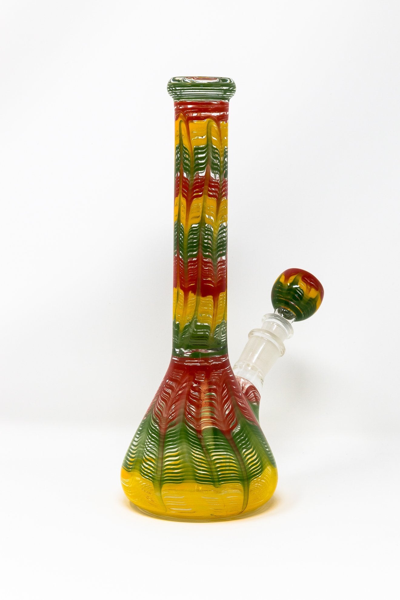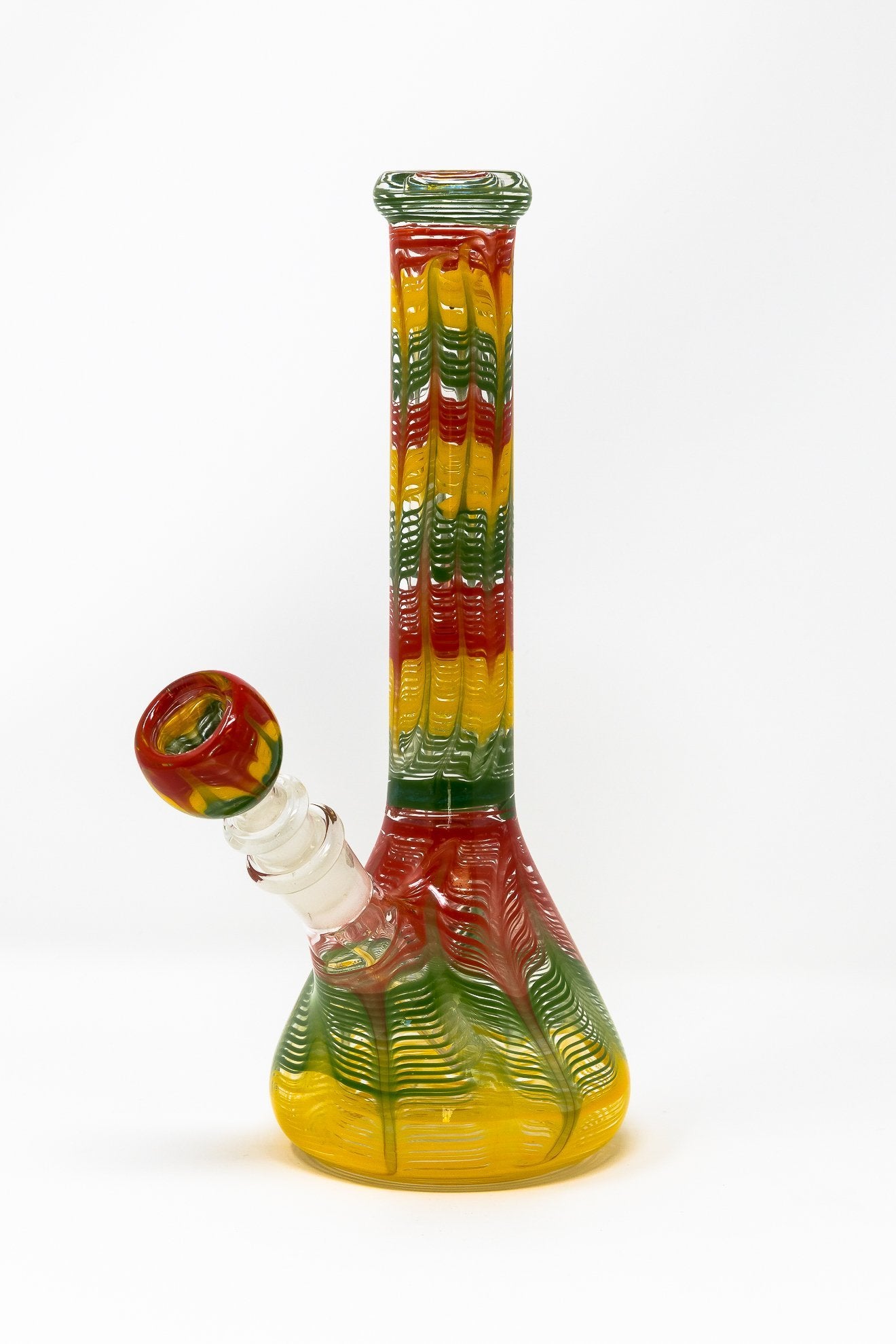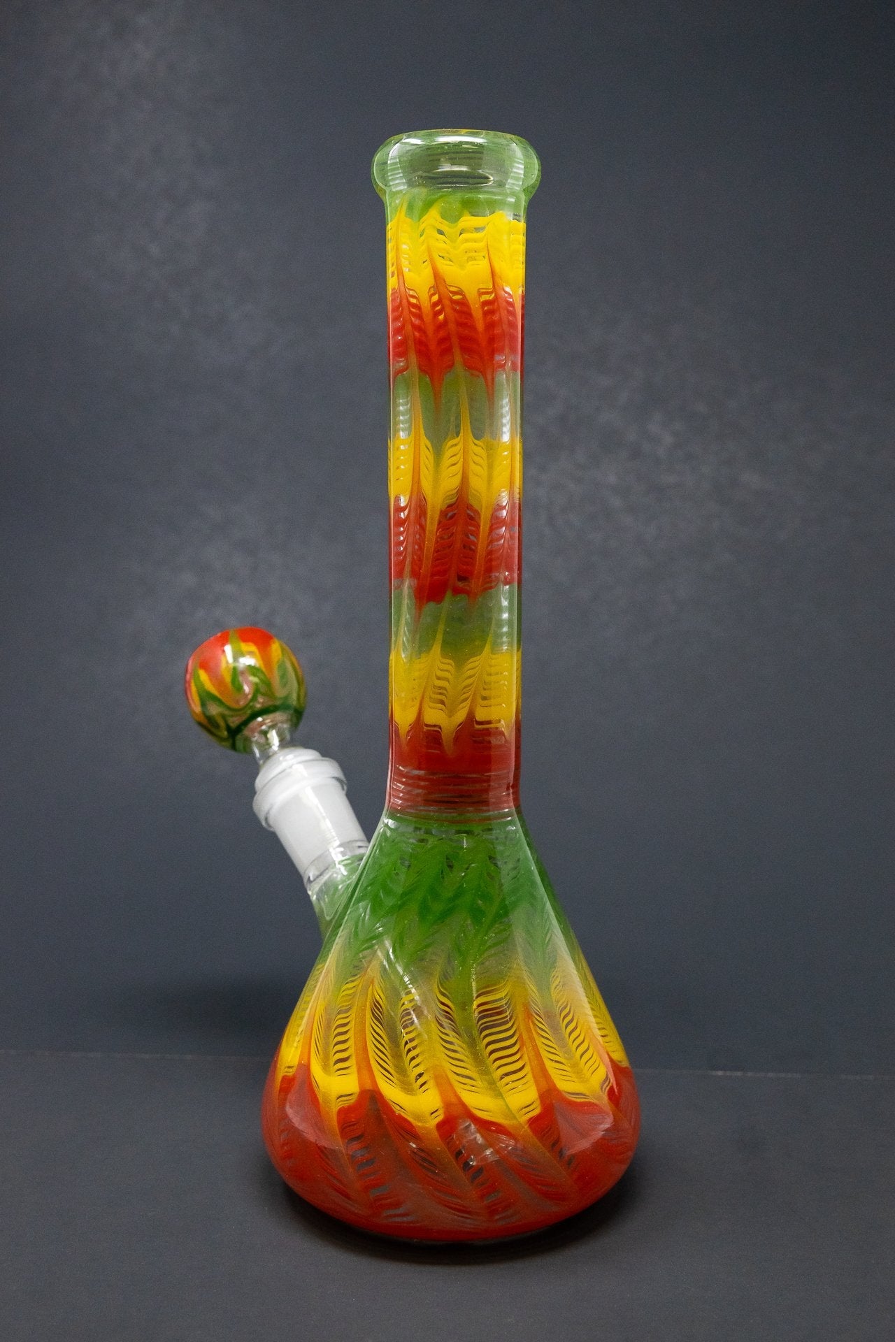 Smoke luxuriously with our beautiful rasta beaker base 10-inch designer bong! This is the perfect bong for an active smoker whether it be yourself or a close smoker friend, this bong is sure to last through sesh after sesh!