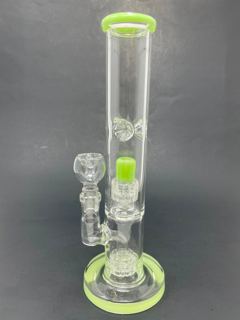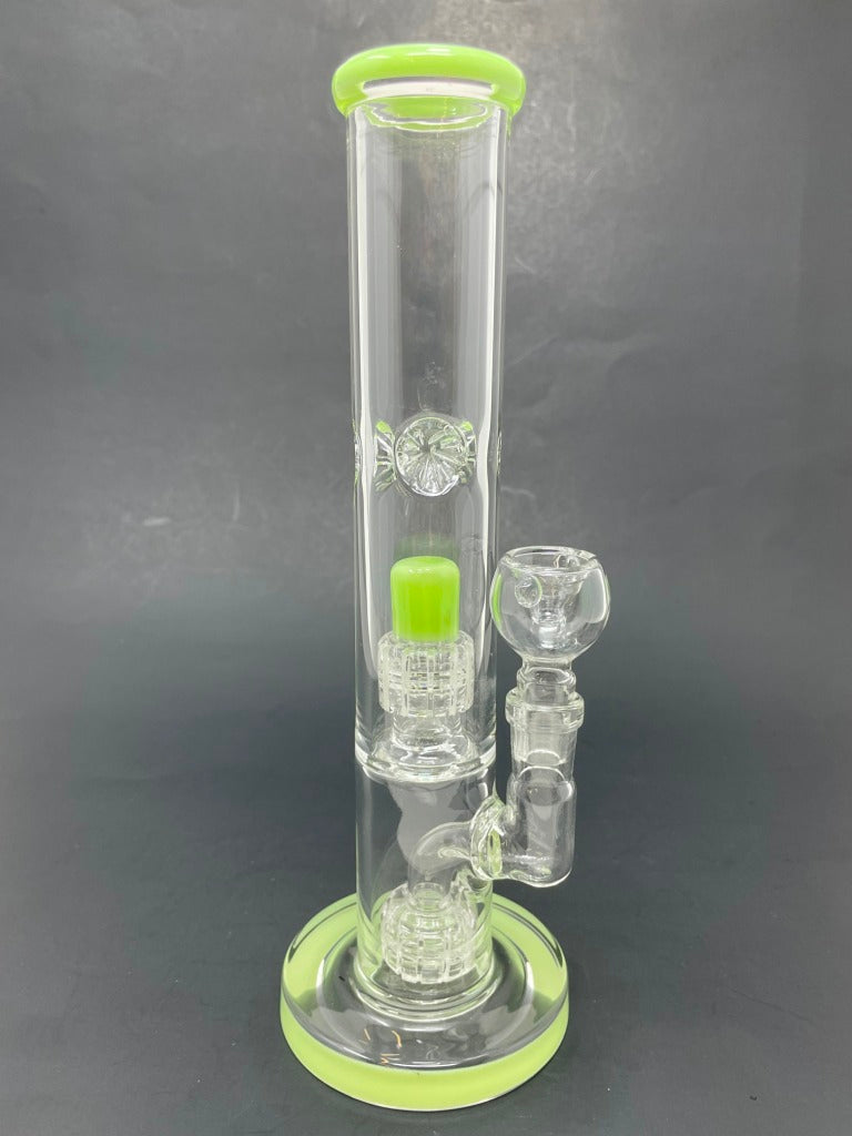 Experience smoother, cooler hits with this expertly crafted water pipe featuring a double percolator for enhanced filtration. The built-in ice catcher lets you add ice cubes to chill your smoke further, ensuring a refreshing experience every time. Made from durable borosilicate glass, it offers reliability and ease of cleaning. Available in assorted colors, this piece combines functionality with a personalized touch to suit your style.