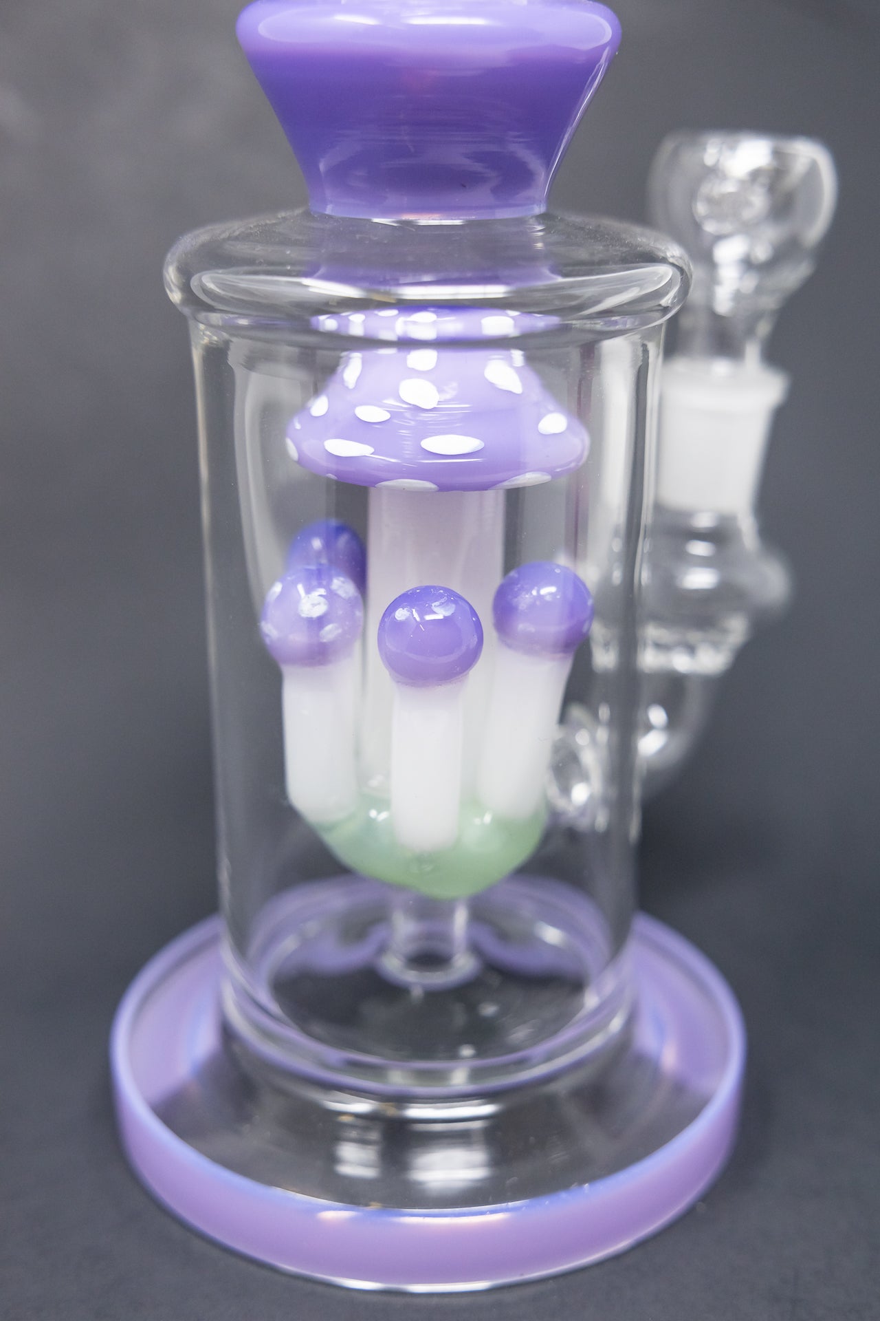 Enjoy the 10" Milky Purple Shower Bend Mushroom Bong's enticing charm. This gorgeous piece flawlessly integrates form and function with its sleek design and brilliant milky purple tones. The bowl's mushroom shape and distinctive shower bend improve smoking, and its small size makes it portable.