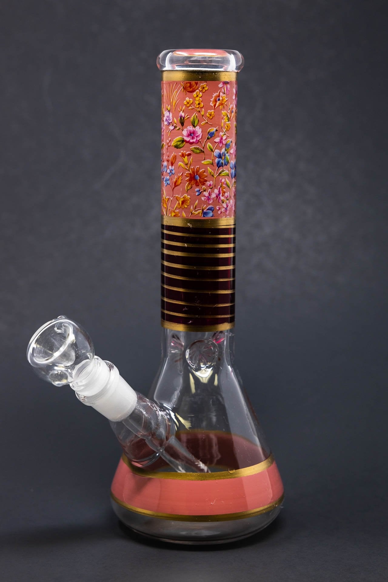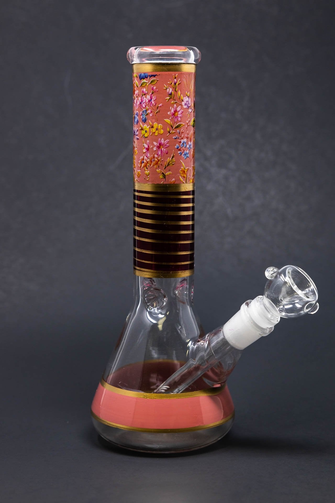 • 10" Pink Floral Beaker Bong w/ Ice Catcher