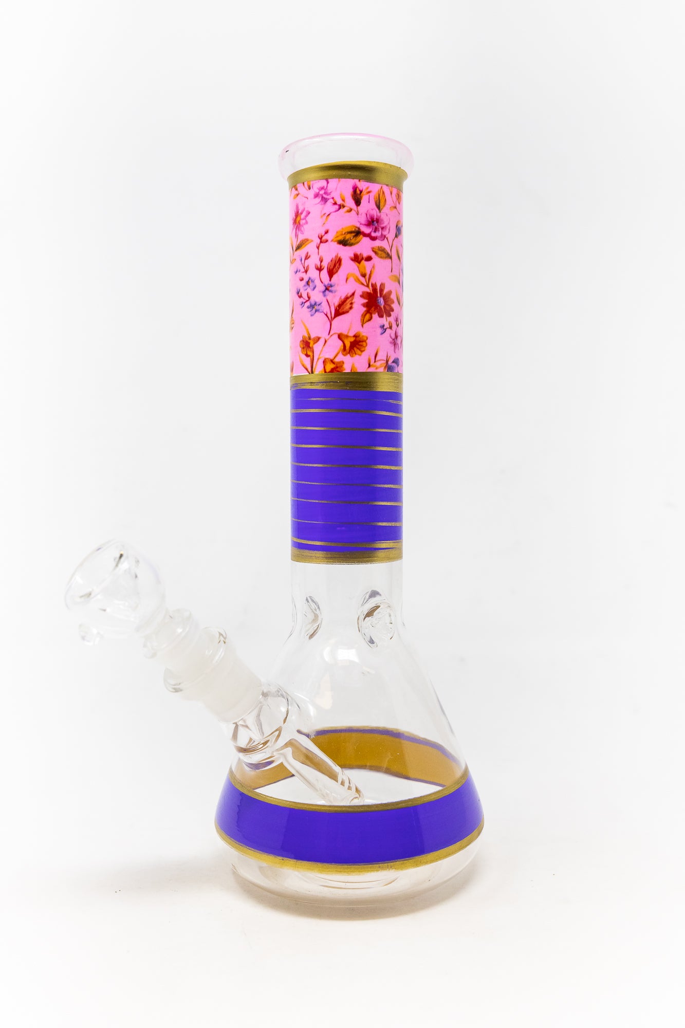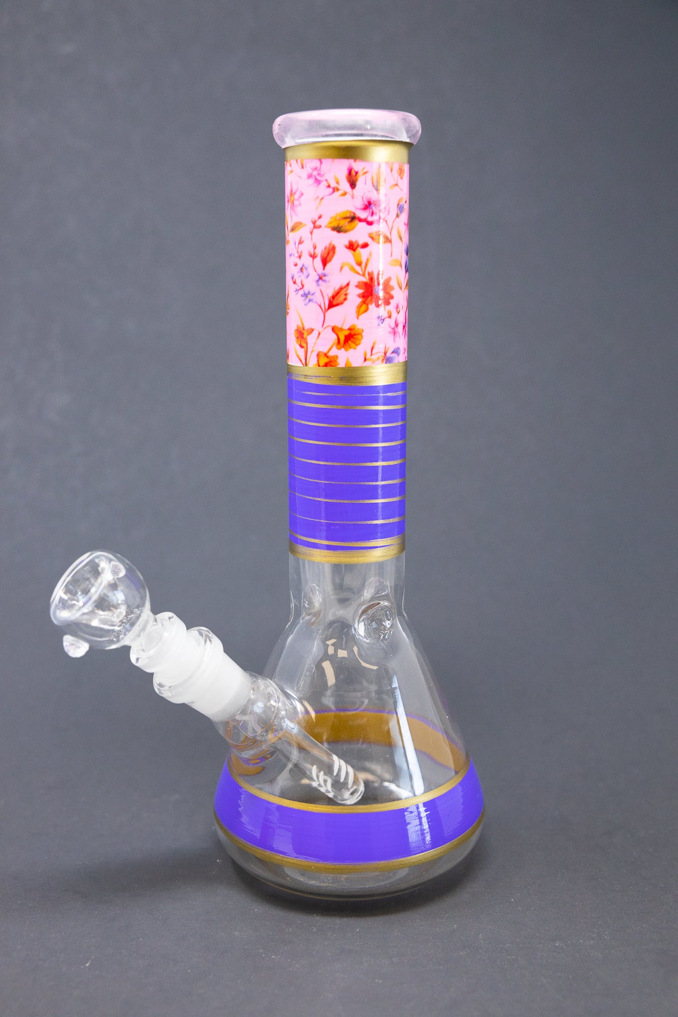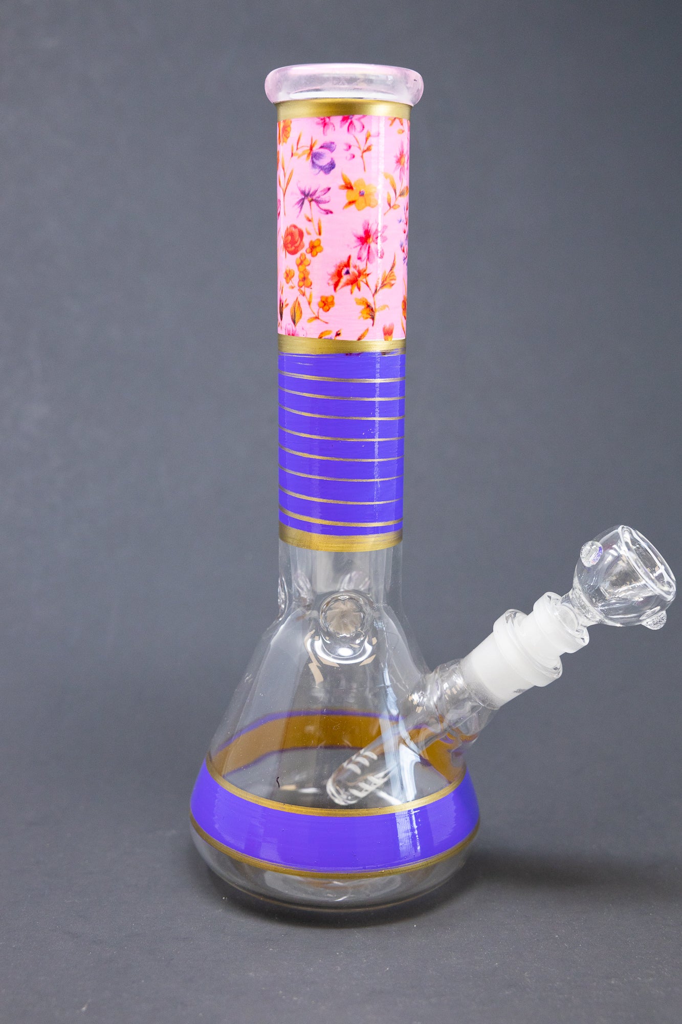 Introducing the 10" Purple Pink Floral bong – the perfect premium piece for those looking for an extra-long throat. This impressive bong stands 10" tall, making it a powerful choice for those wanting to take their smoking experience to the next level.