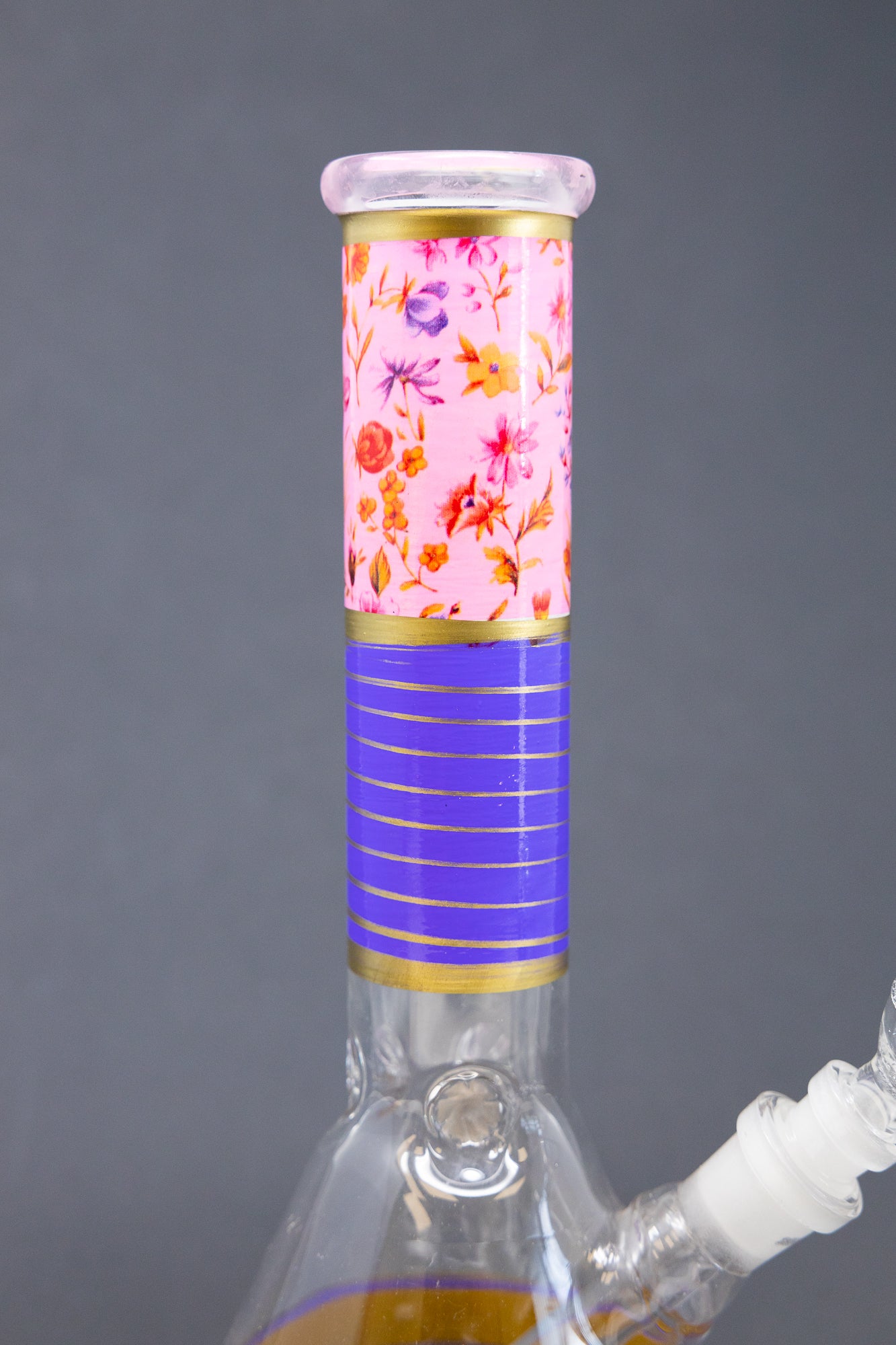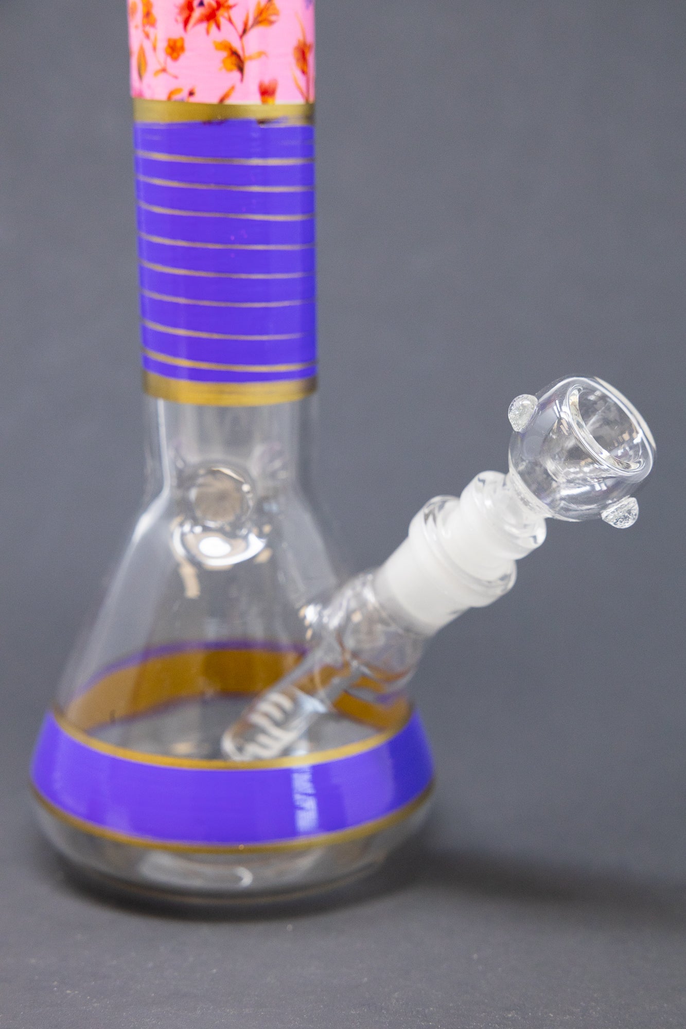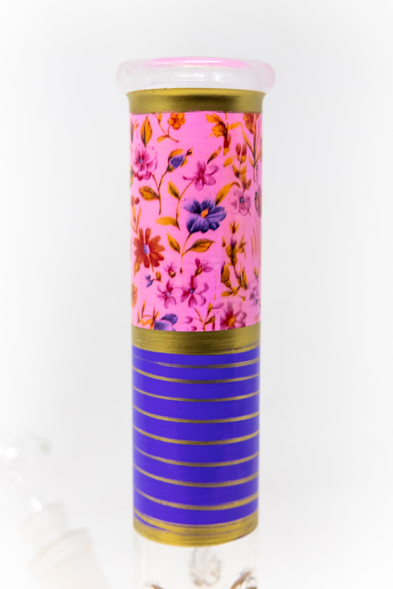 Introducing the 10" Purple Pink Floral bong – the perfect premium piece for those looking for an extra-long throat. This impressive bong stands 10" tall, making it a powerful choice for those wanting to take their smoking experience to the next level.