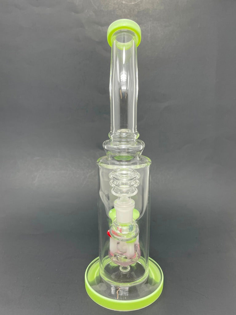 This 12" green bong features a mushroom percolator designed to enhance filtration and deliver smoother hits. Equipped with a round 14mm bowl, it offers easy packing and optimal airflow. Available in various colors, this piece combines functionality with style for an elevated smoking experience.