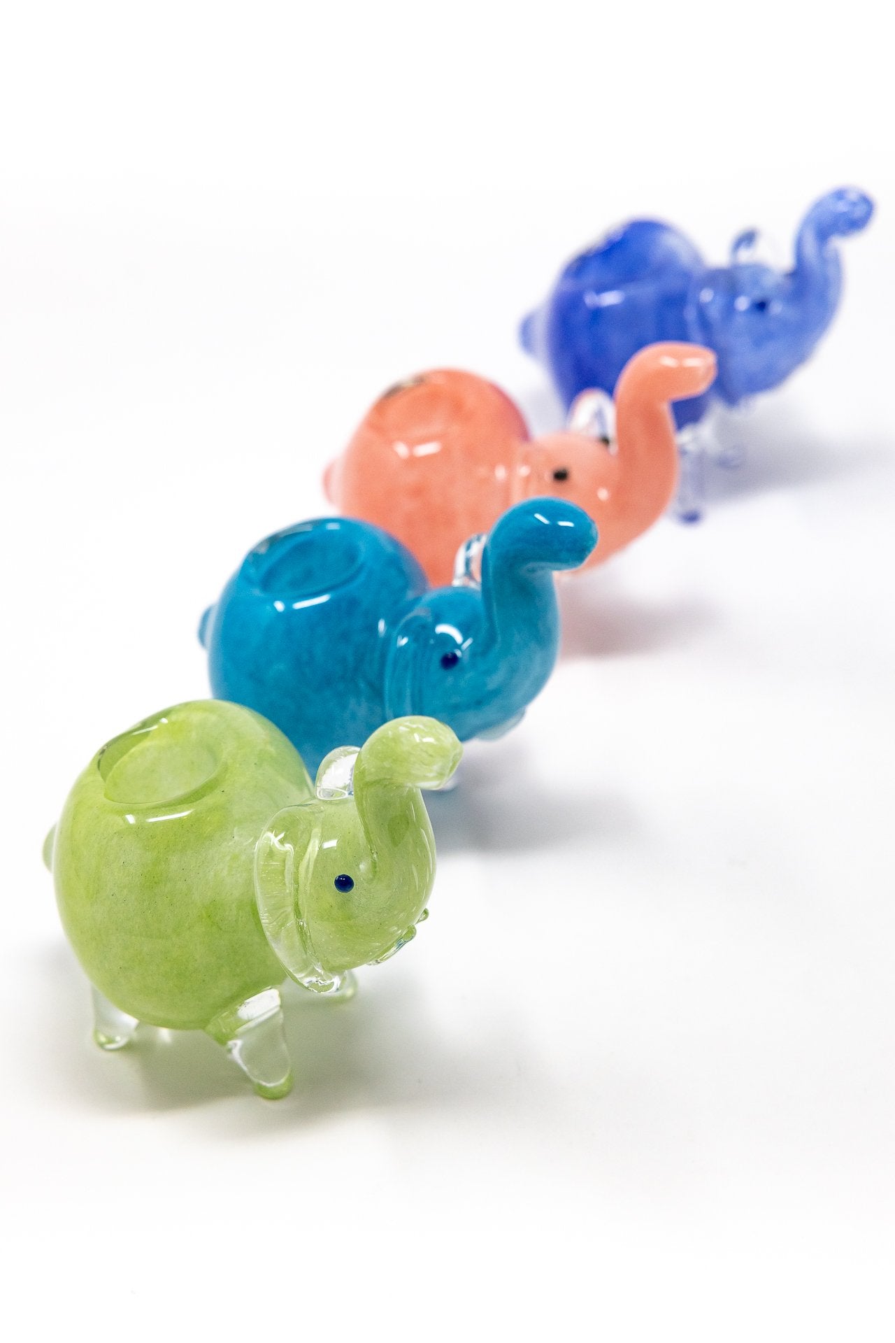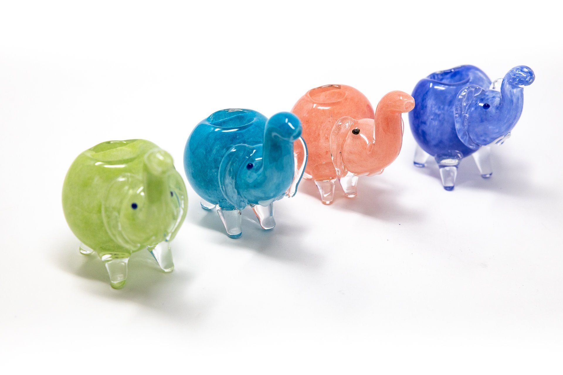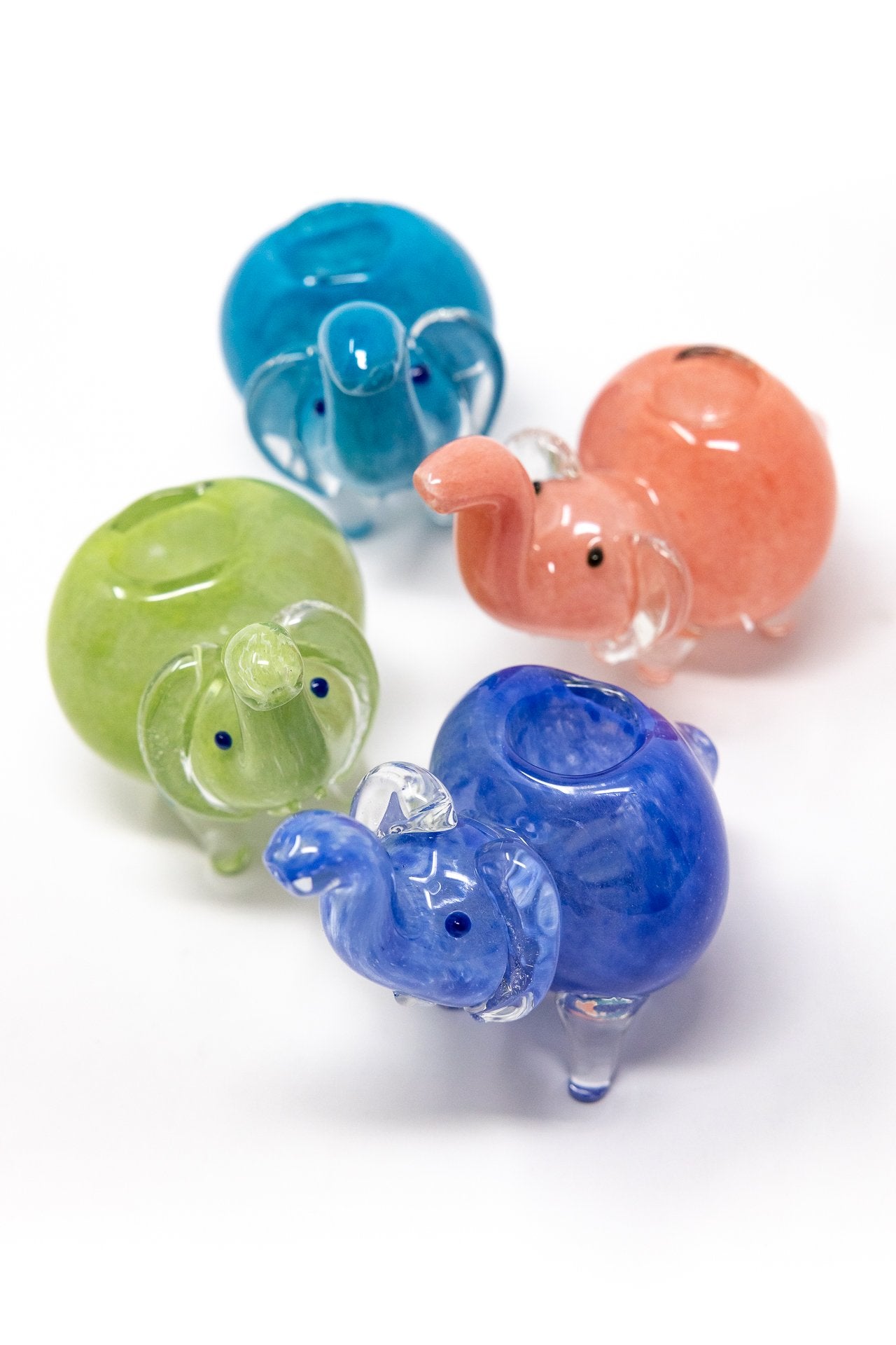We at Stoned Genie are proud to present our sparkling, handcrafted 4-inch glass, collectible, Elephant smoking pipes!