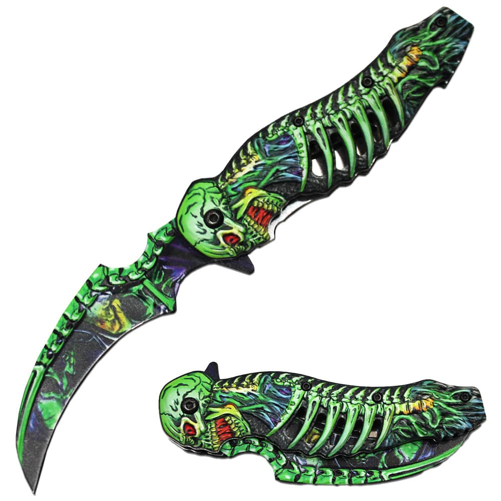 Discover the 4.5" Green Skeleton Assist-Open Knife, expertly designed for convenience and durability. Featuring a sleek skeleton handle, smooth assist-open mechanism, and a sturdy belt clip, this knife is perfect for everyday carry and outdoor enthusiasts.