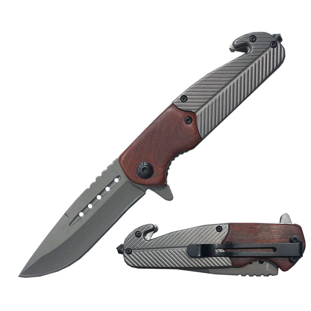 Introduce the 4.5" Metal & Wood Handle Assist-Open Tactical Folding Knife: expertly crafted for durability, precision, and style. Ideal for everyday carry and outdoor adventures.