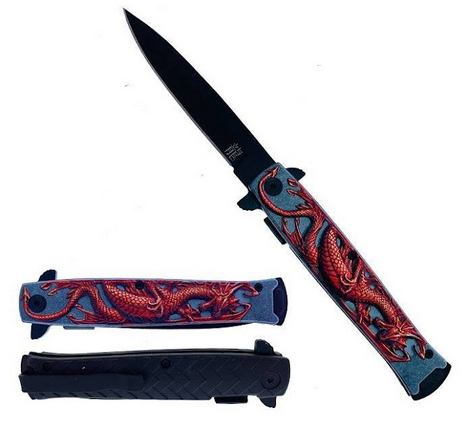 Discover the 4.5" Red Embossed Dragon Assist-Open Folding Pocket Knife—expertly crafted for durability and style. Featuring a striking dragon design and smooth assist-open mechanism, it's perfect for everyday use or collection.