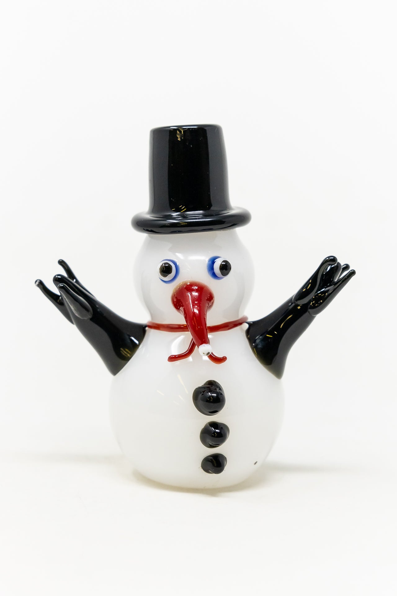 This 4.5" Snowman Hand Pipe is hand-crafted from high-quality glass and features a snowman design for an eye-catching and unique smoking experience. Enjoy using this pipe for convenient and smooth smoking.