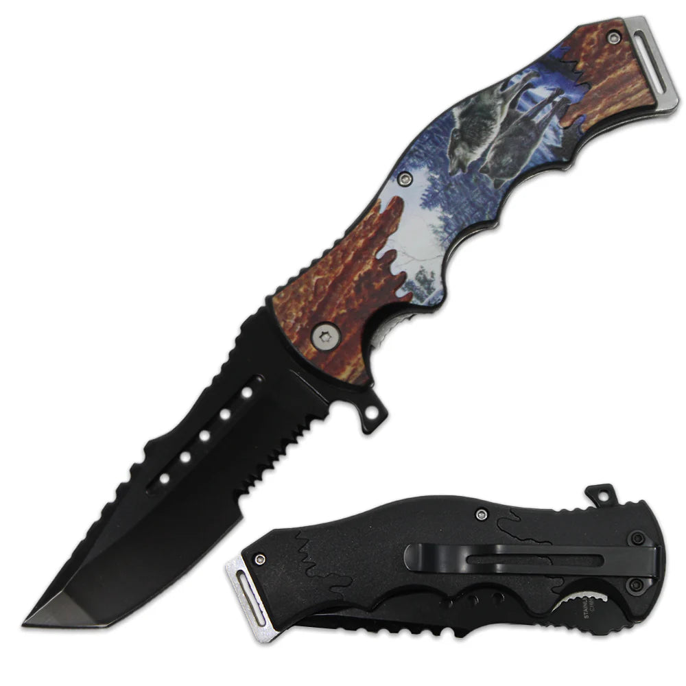 Experience precision and style with the 4.5" Wood Wild Life Wolf Folding Knife. Featuring assist-open technology, a stunning wolf design, and a durable wooden handle, this knife is perfect for outdoor enthusiasts and collectors alike. Compact, reliable, and easy to carry, it’s a must-have tool for any adventure.