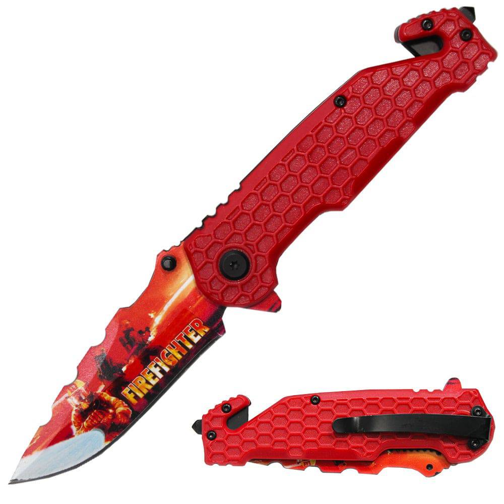 Meet our new"4.75" Serviceman Red Honeycomb Handle Tactical Rescue Knife, expertly designed for durability and versatility. Perfect for outdoor enthusiasts, it features a sharp blade, ergonomic grip, and reliable performance for emergencies or daily use.