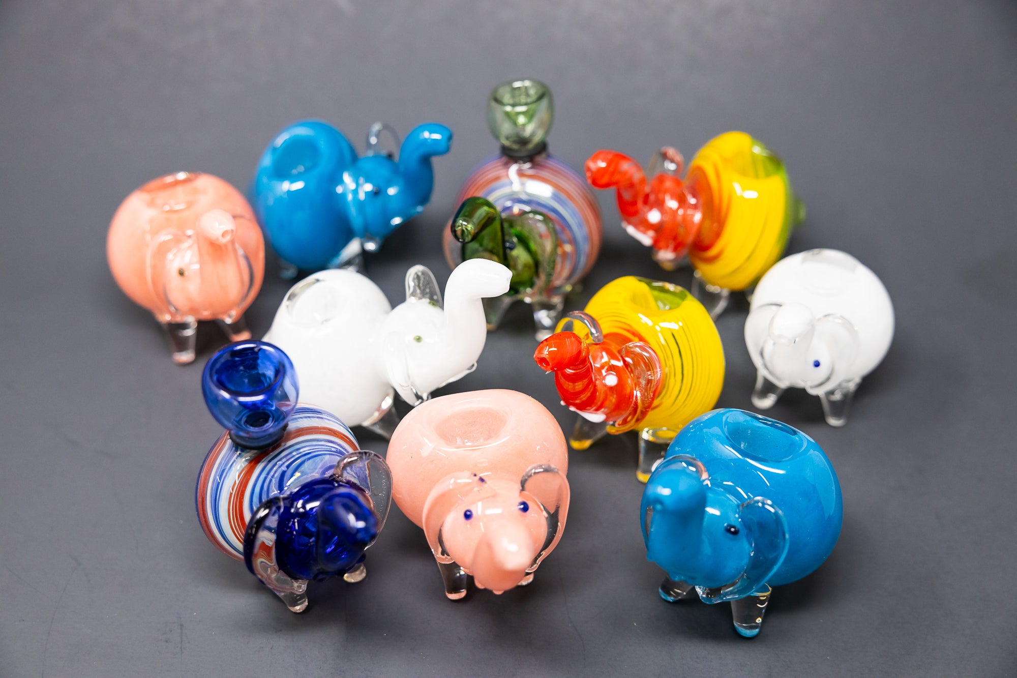 Elevate your smoking experience with our 4" Assorted Elephant Hand Pipes. Each bundle comes with 10 unique pipes featuring hand-crafted elephant designs. With a carb hole for easy smoking, enjoy a smooth and flavorful hit every time. Perfect for any smoking enthusiast or as a unique gift.