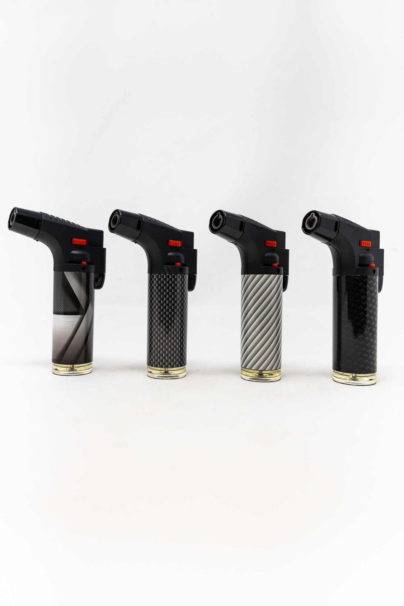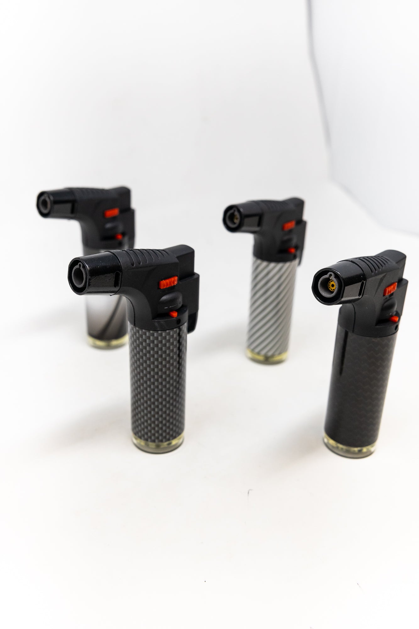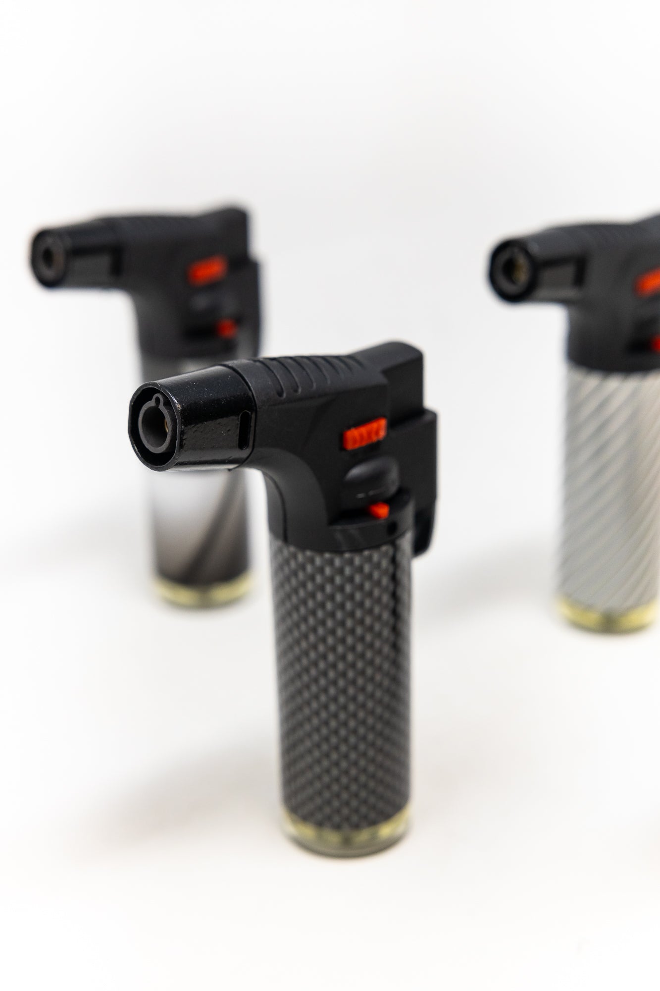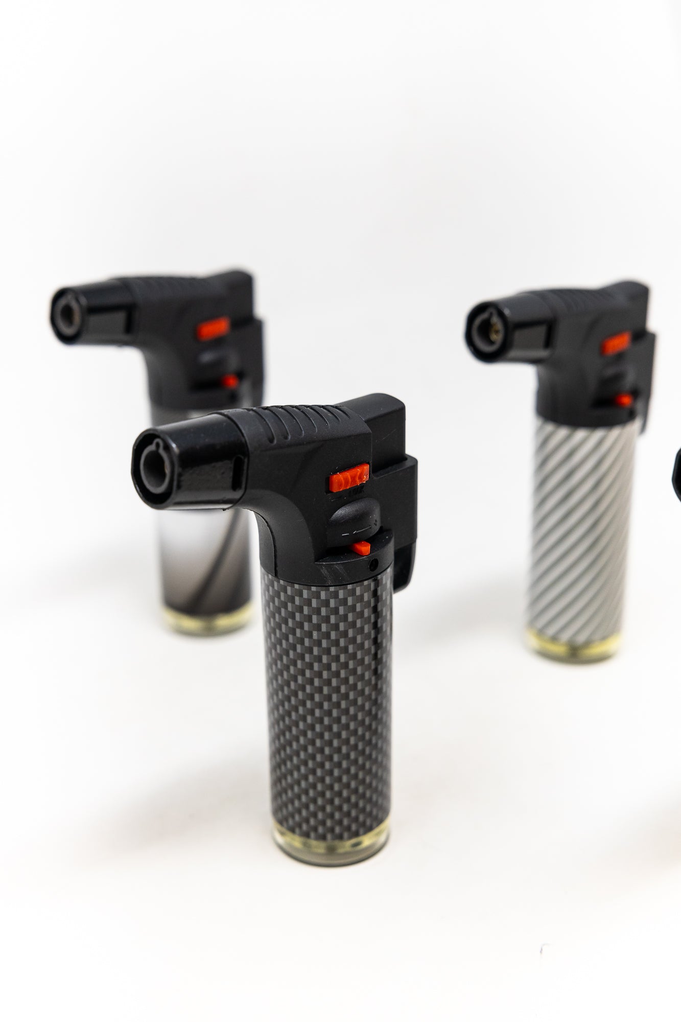 Introducing the "5" Blink Carbon Fiber Torch" - a premium torch designed for your smoking needs. Equipped with a childproof safety lock system, it ensures safety and peace of mind. The ergonomic design allows for comfortable handling, while the comfy grip handle provides a secure hold. With its push-button ignition, lighting up becomes effortless. Elevate your smoking experience with this sleek and reliable carbon fiber torch.