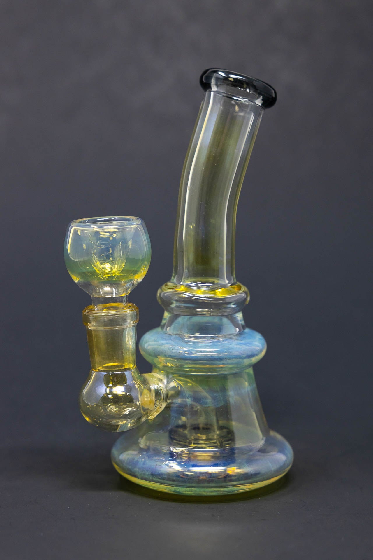 The 5-inch shower bend is fumed color changing glass. One of a kind water pipe that you will love to use every day!