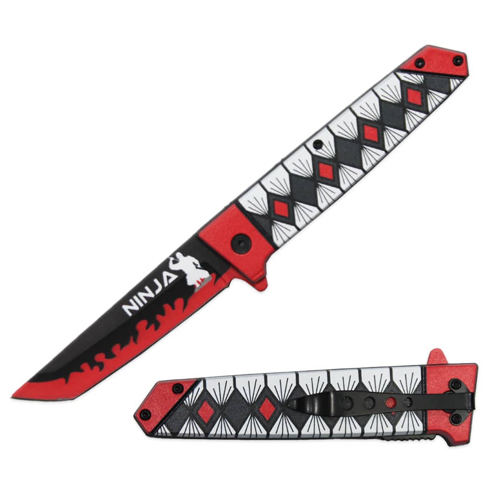 Elevate your everyday carry with the "5" Ninja Red & Black Assist-Open Folding Knife. Featuring a razor-sharp stainless steel blade, ergonomic grip, and sleek red-and-black design, it offers precision, durability, and style. The built-in belt clip ensures easy accessibility for any adventure or task.