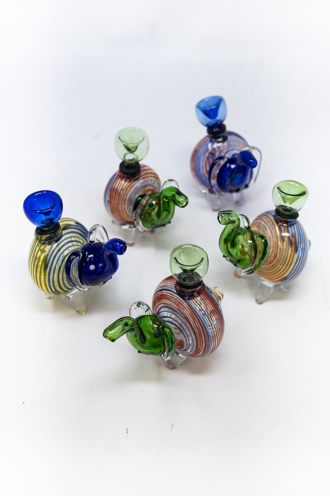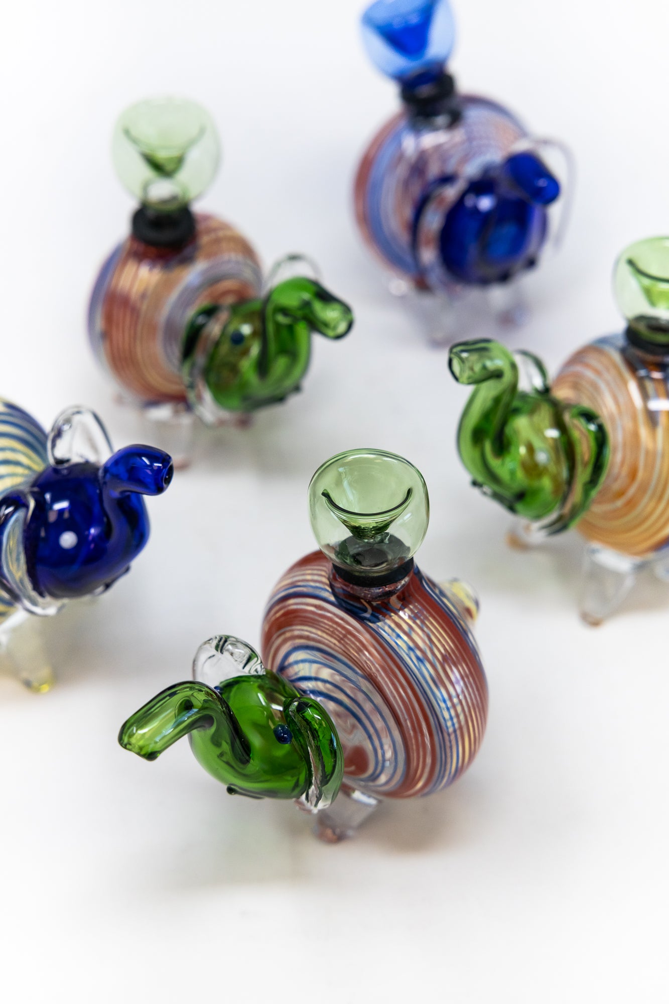 Introducing the 5 PC Elephant Pipe, the perfect accessory for any smoking enthusiast who desires an innovative yet convenient piece of equipment. Not only is this handcrafted glass pipe a stunningly unique elephant design that will fit in the palm of your hand with ease, it's also compact and captivating for anyone looking to add a touch of creativity to their collection.