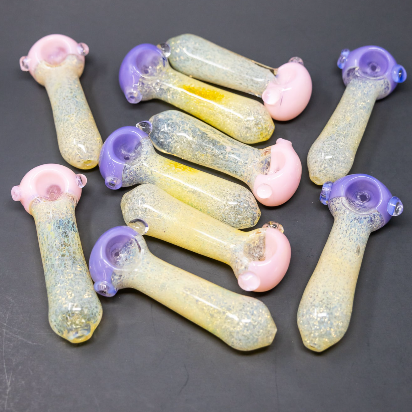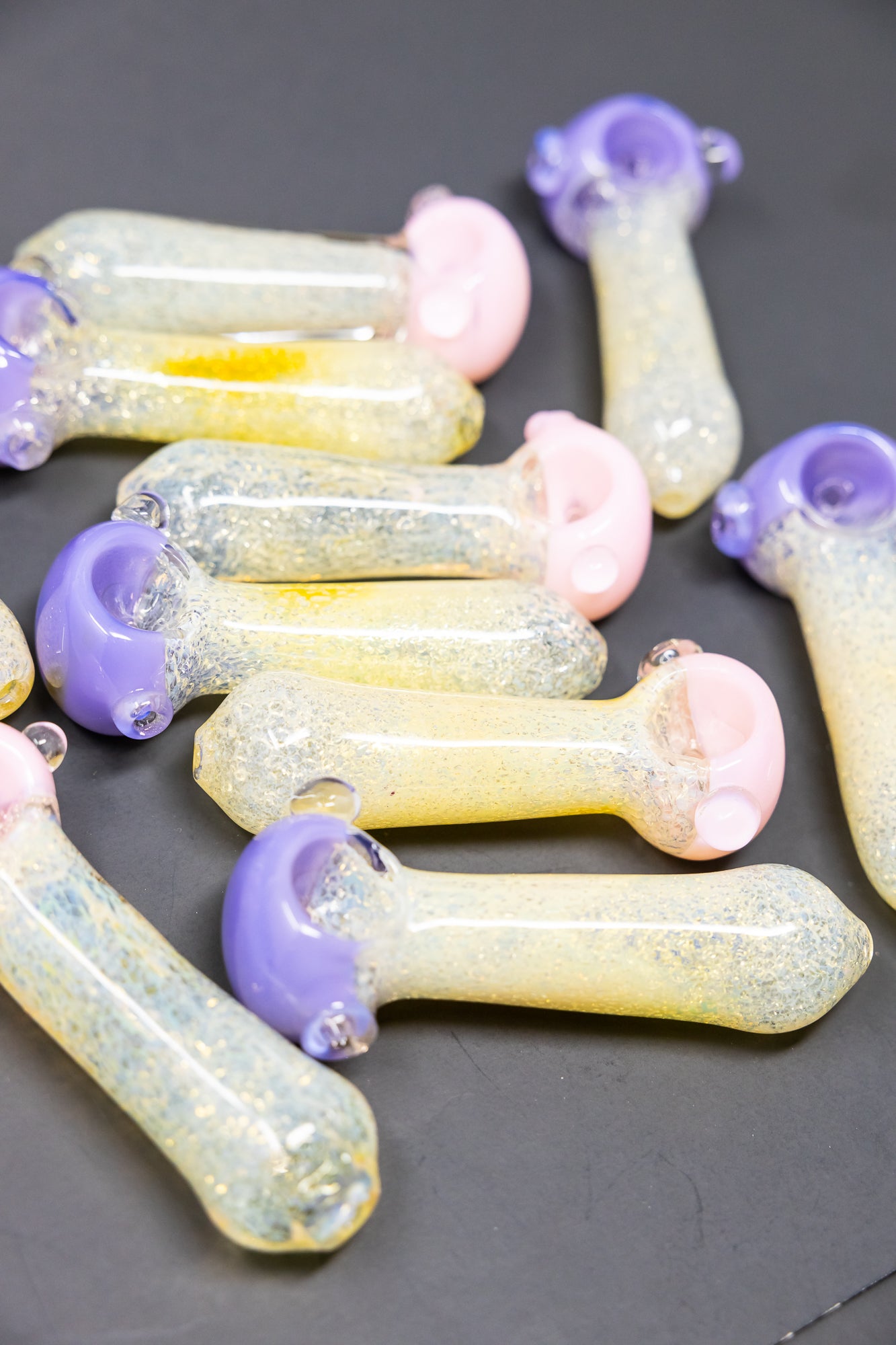Elevate your smoking experience with our 5 Pink/Purple Crackle Hand Pipes. Each pipe is handcrafted from durable Borosilicate glass, ensuring long-lasting use. The assorted colors add a touch of personality to these functional pieces. With a 10 pc bundle, you'll always have a clean pipe on hand.