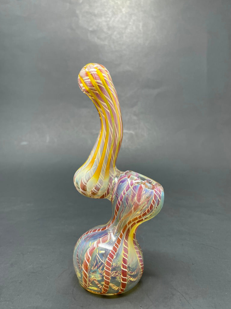 Crafted from durable borosilicate glass, this 5" Sherlock bubbler in vibrant red combines style with functionality. Featuring a side carb hole for smooth airflow control and unique fumed color accents, each piece is handmade to ensure quality and individuality. Elevate your experience with this striking, easy-to-use bubbler designed for both aesthetic appeal and optimal performance.