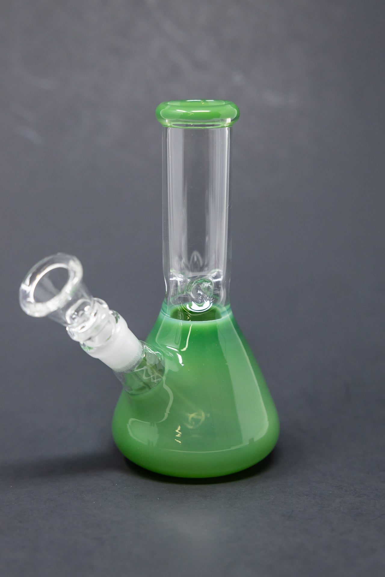 Lets introduce our 6" Milky Green Beaker Bong. This mini ice catcher features a 14mm stem with an attached bowl and stylish Milky Green color. Perfect for a smooth and cool smoking experience. Compact at 6 inches for portability and convenience.
