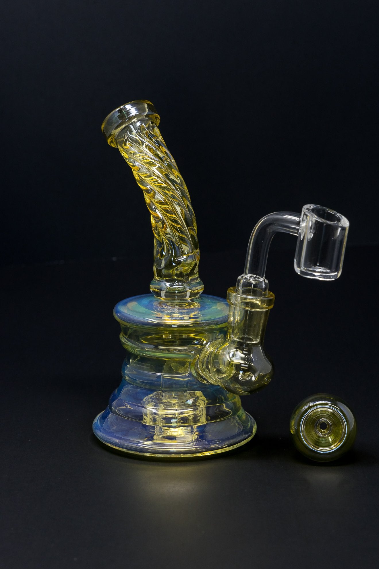 The 6-inch dab rig is fumed color changing glass. One of a kind dab rig that you will love to use every day!