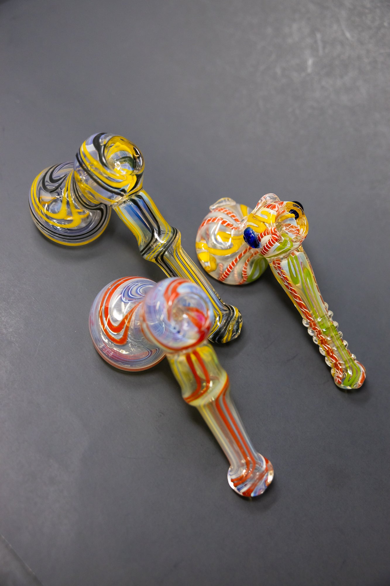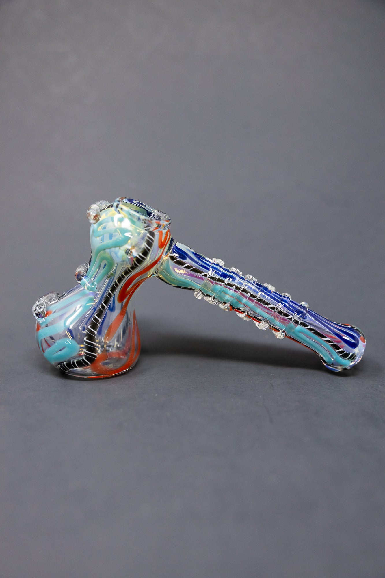 Experience smooth and powerful hits with our 7" Fumed Hammer Bubbler in vibrant blue, red, and yellow. This handcrafted bubbler features a unique fumed design and a hammer shape for an ergonomic grip. Elevate your smoking experience with this stylish and functional piece. Limited quantities available.
