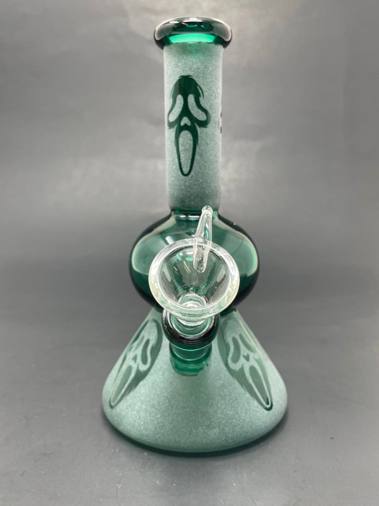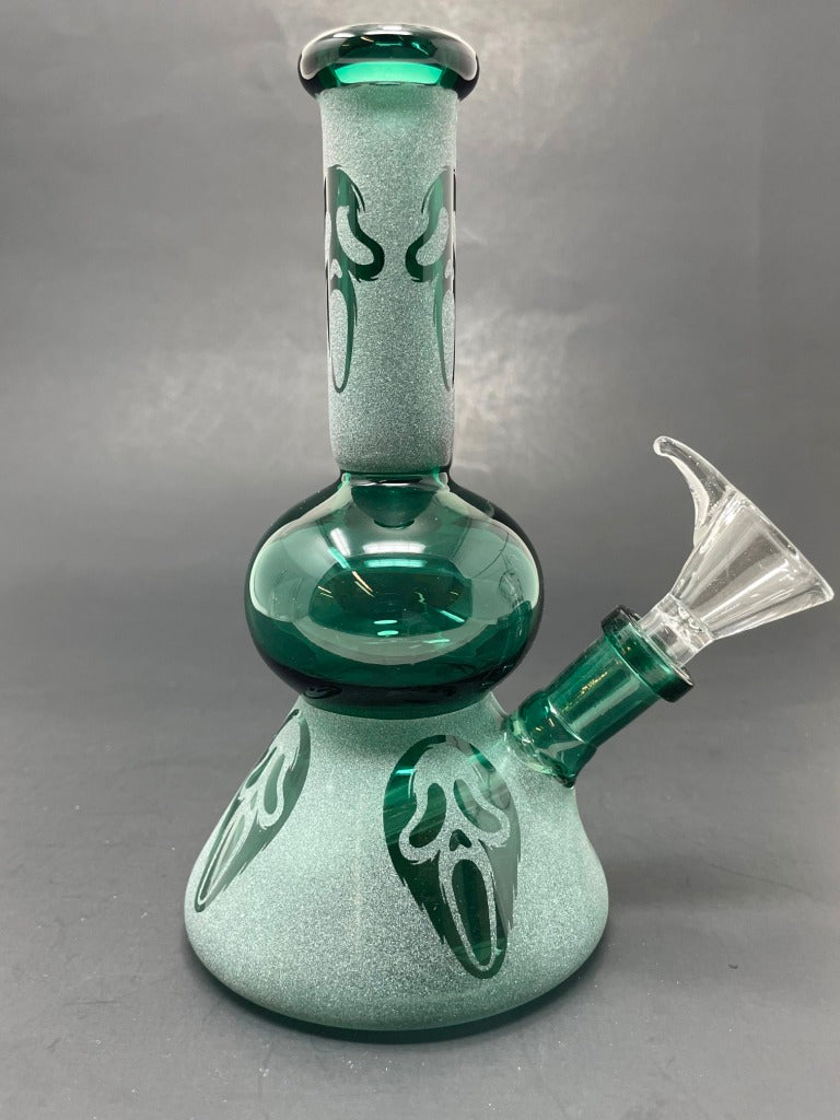 Experience smooth sessions with the 7" Ghost Face Bong in Aqua. Crafted from durable borosilicate glass, it features a sand-blasted bubble splash guard to prevent water from reaching your mouth. The built-in stem and 14mm bowl ensure easy use and efficient filtration. Available in different colors, this bong combines functionality with style for a reliable and enjoyable smoking experience.