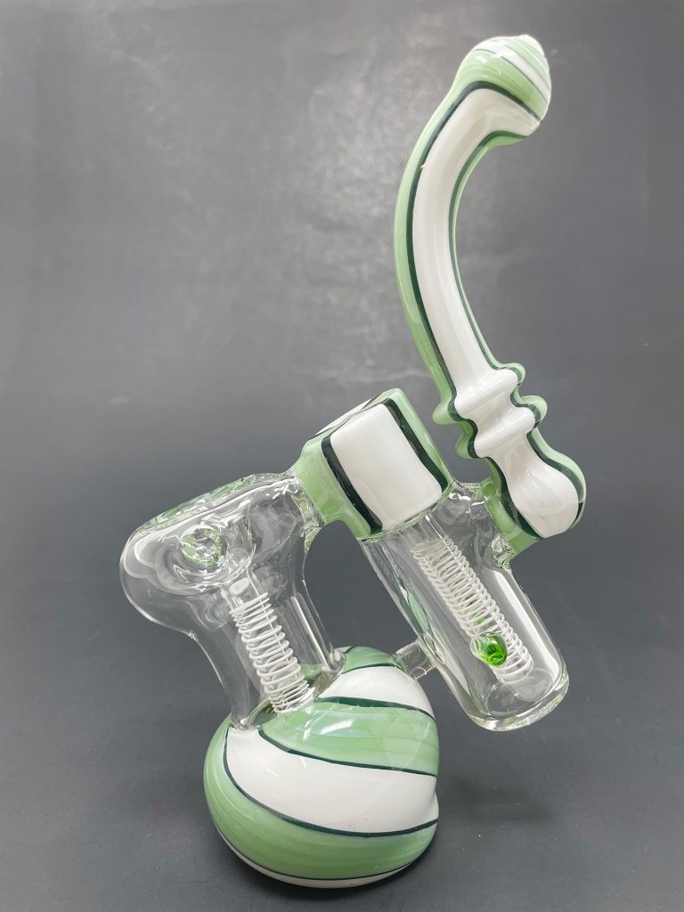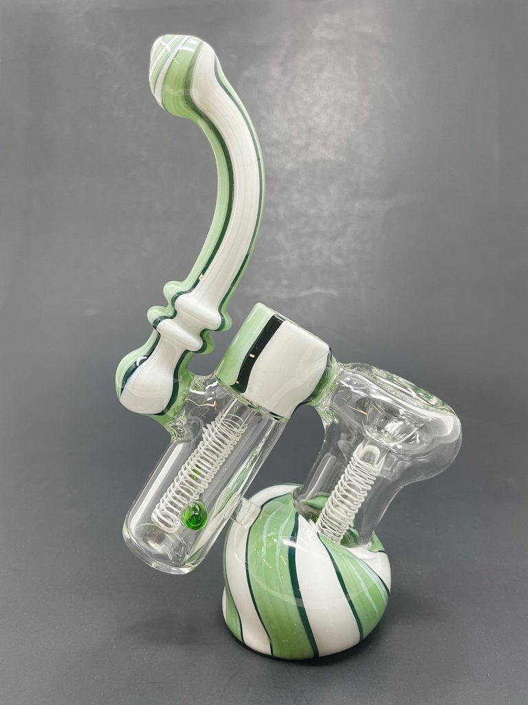 Upgrade your smoking experience with our 7" Green/White Double Chamber Bubbler. Crafted with premium thick glass and a convenient carb hole, this must-have piece fits easily in your hand and delivers a smooth hit every time. Perfect for on-the-go use, it's the ultimate choice for any smoking enthusiast.
