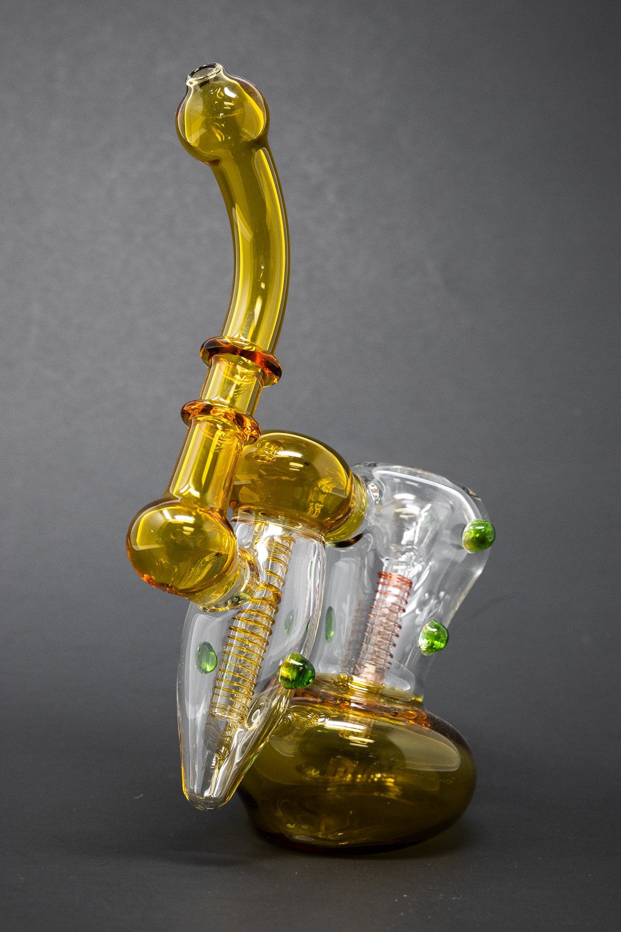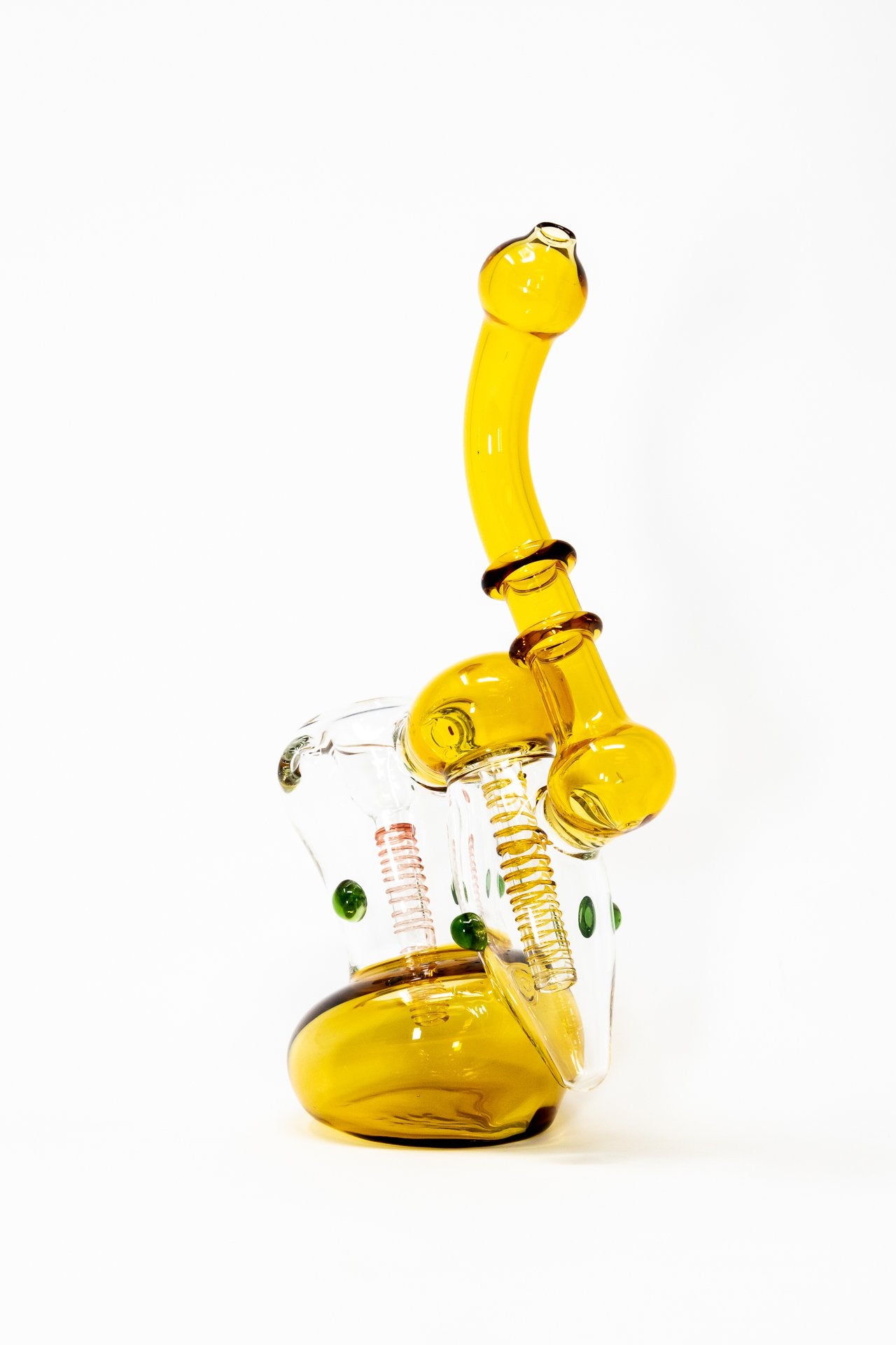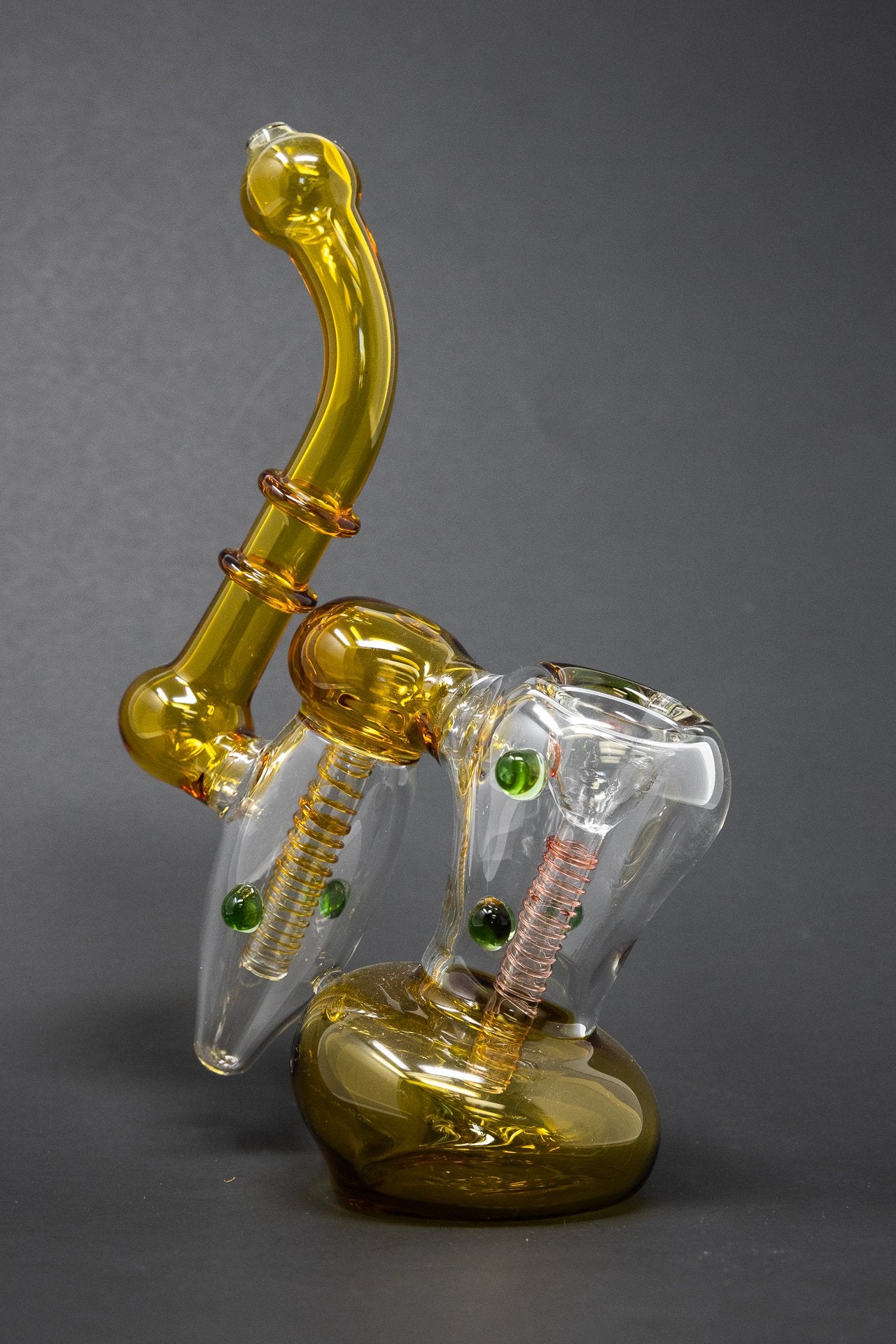 Premium Heavy Amber Double Chamber Bubbler w/ Carb Hole