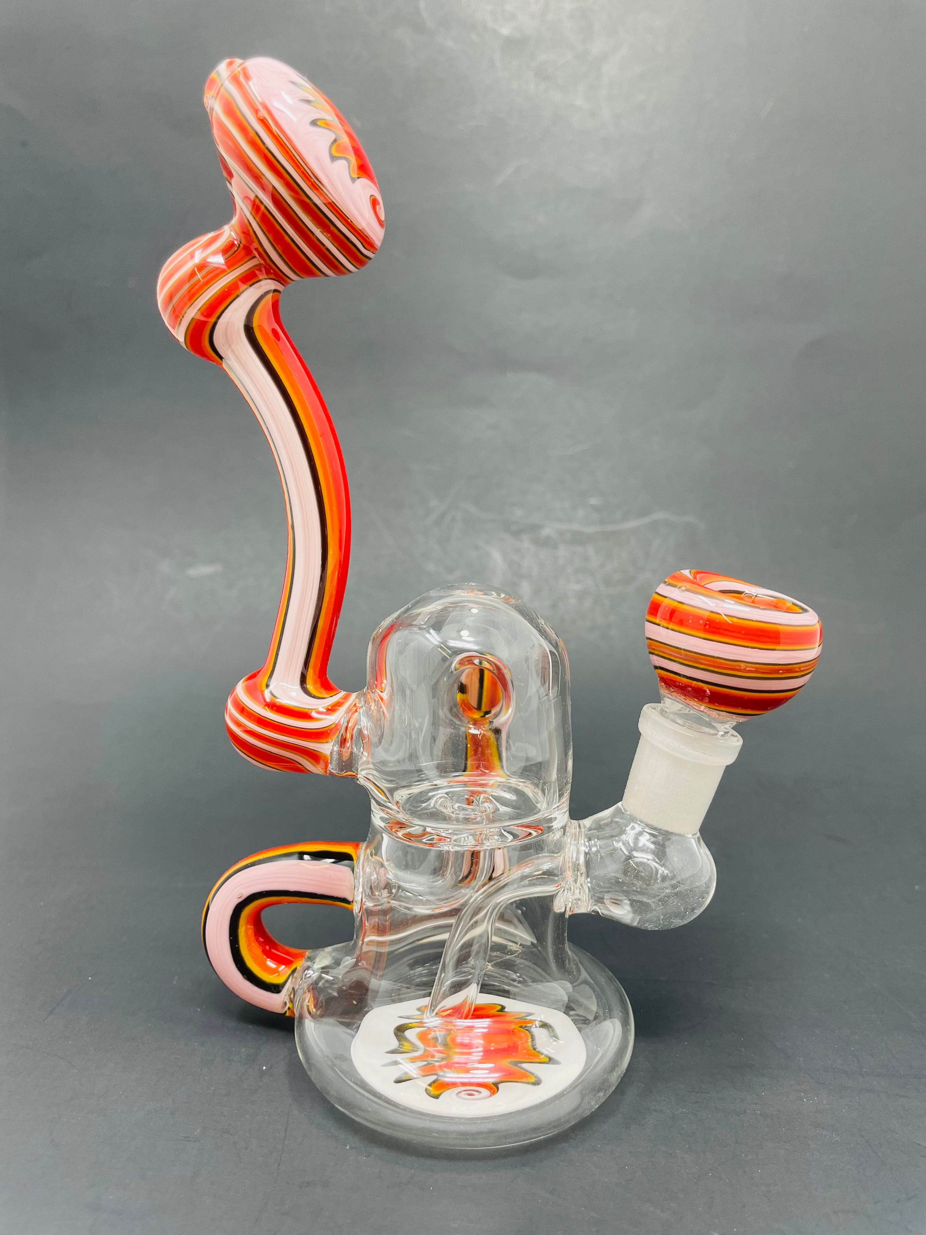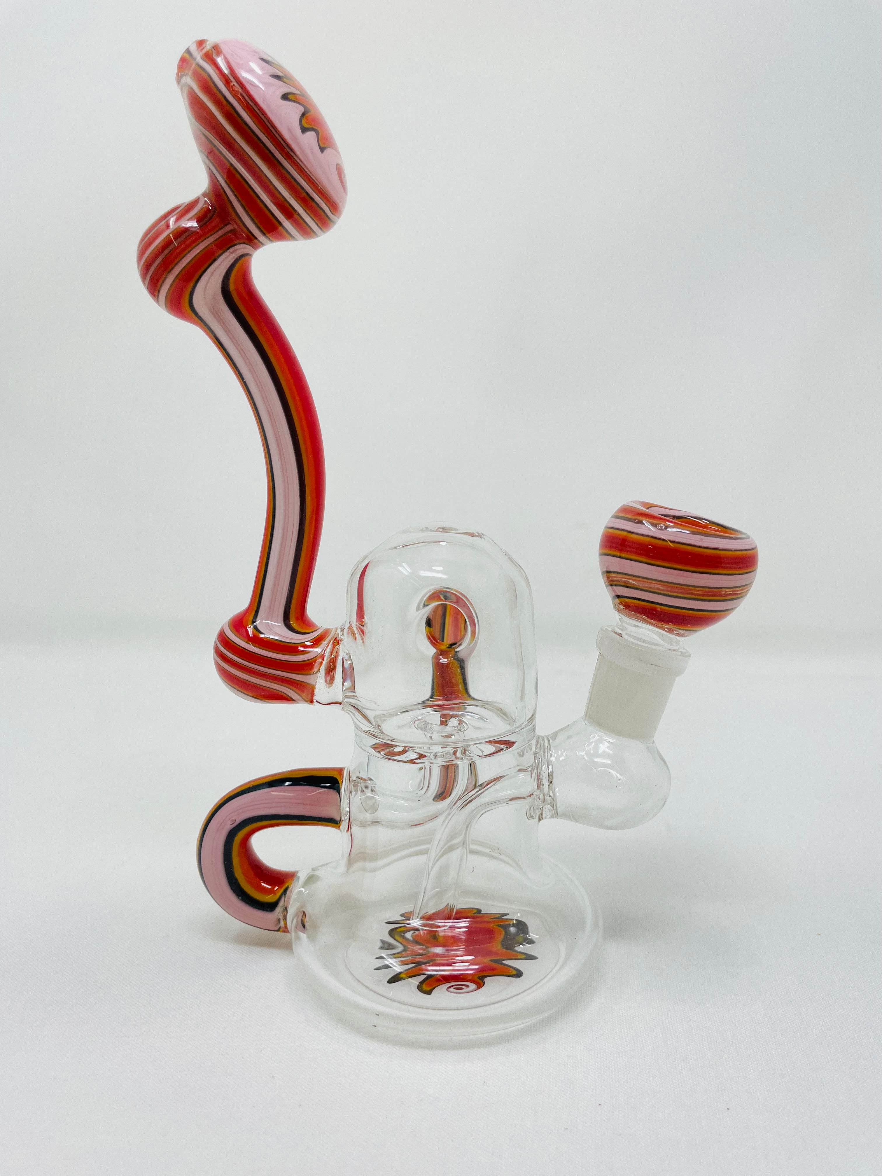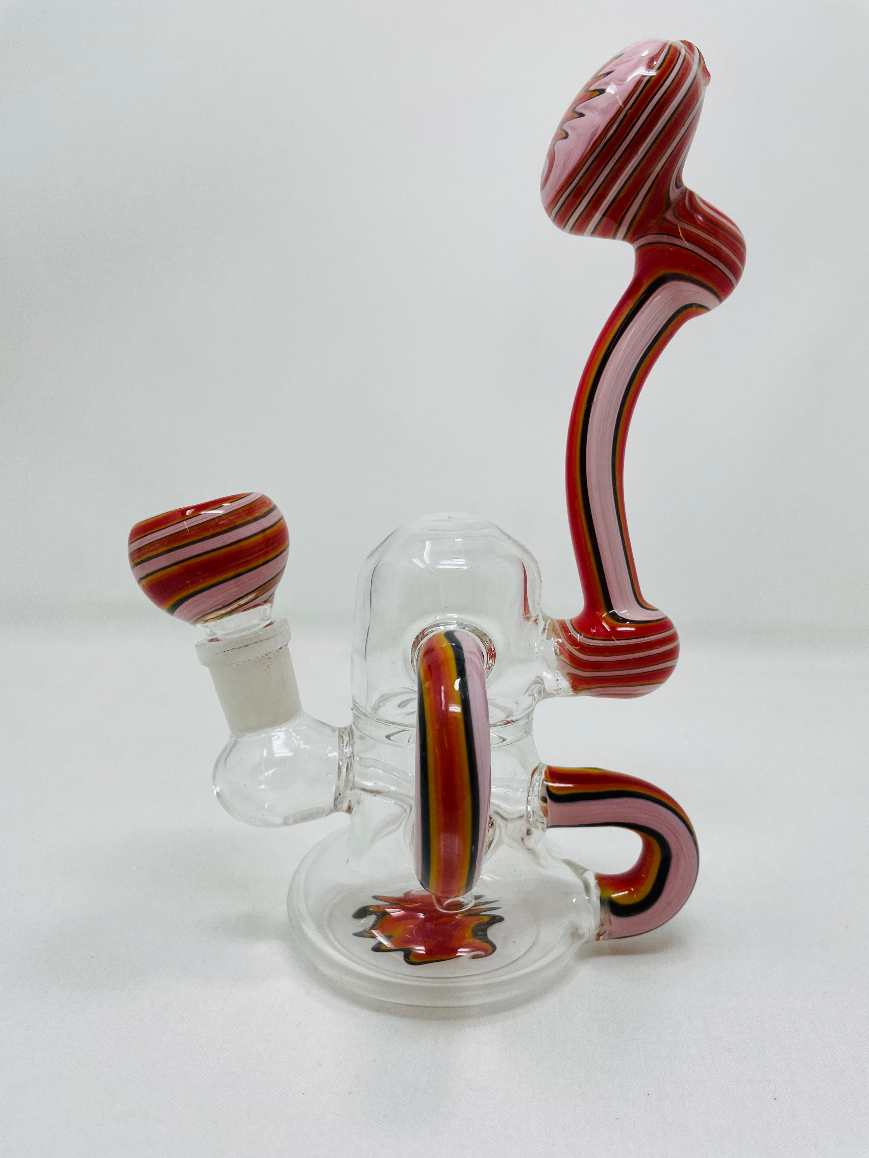 Upgrade your smoking experience with our 7" Round Recycler. Made with high-quality borosilicate glass, this handcrafted piece features a unique recycler design that delivers cleaner hits. Say goodbye to harsh smoke and hello to a smoother, more enjoyable session.Â