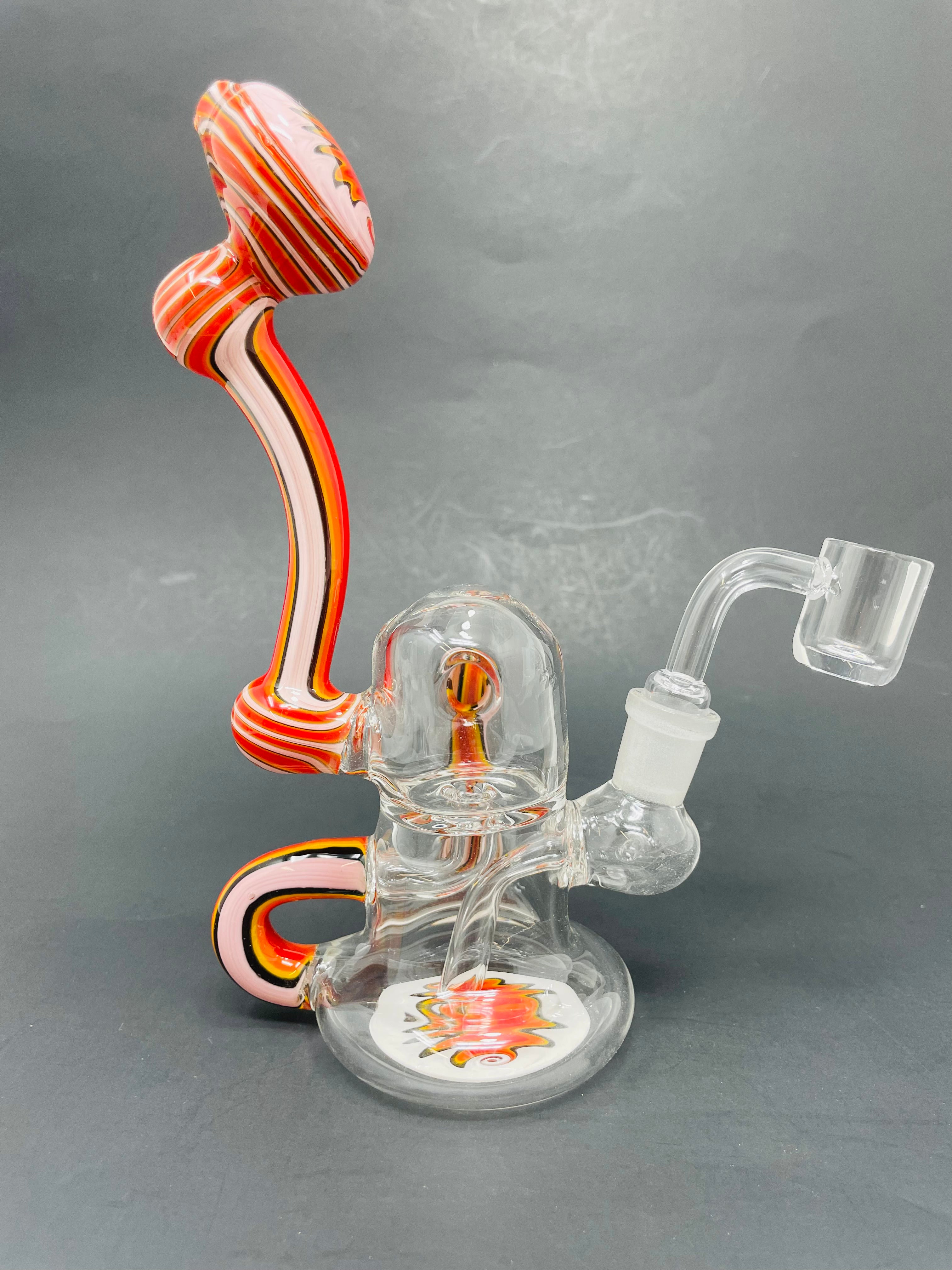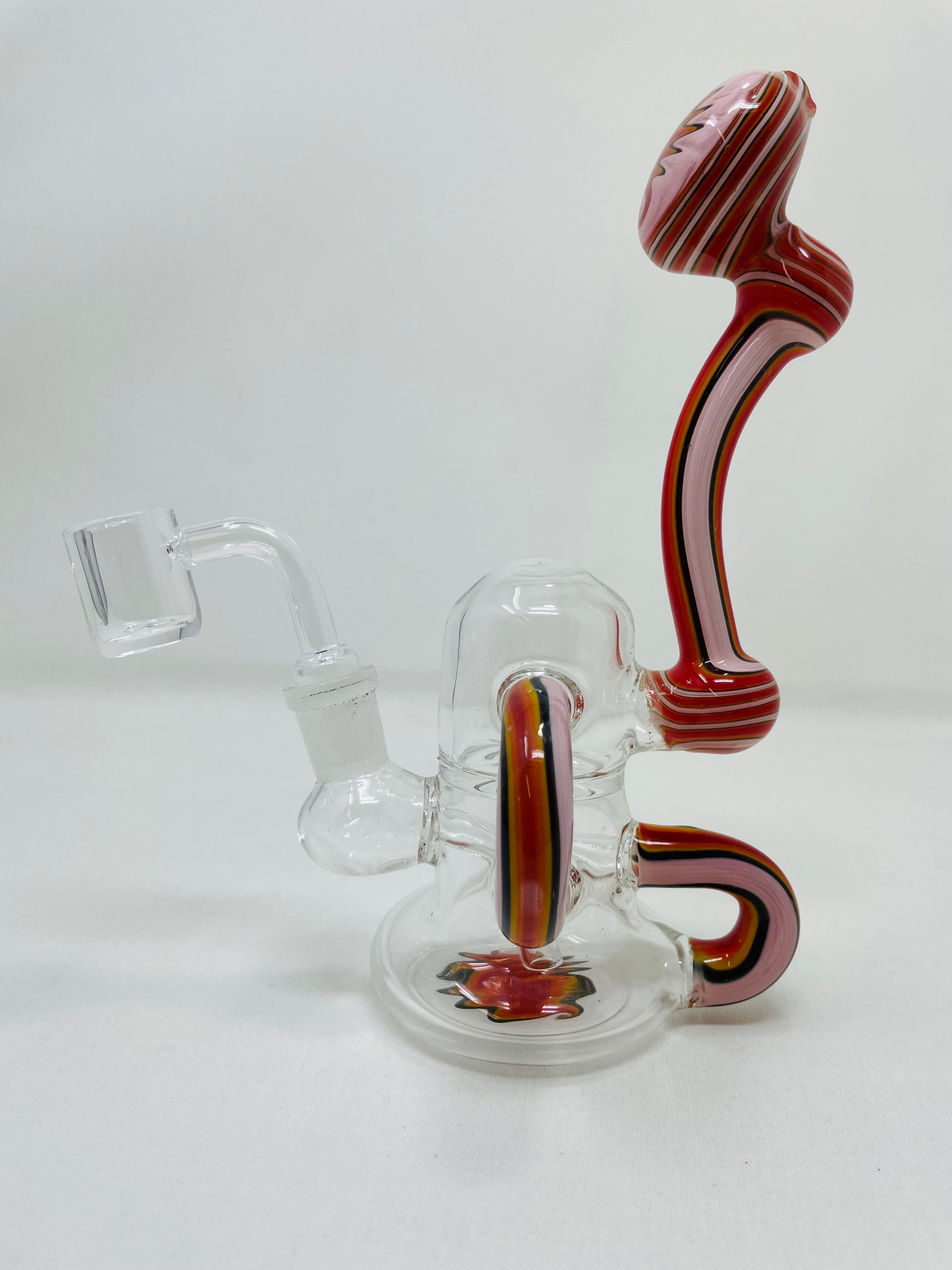 Upgrade your smoking experience with our 7" Round Recycler in Pink. Made of durable and handcrafted borosilicate glass, this recycler features a 14mm banger. Its unique design allows for maximum filtration, delivering a cleaner and more enjoyable smoking experience.