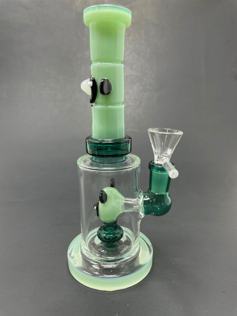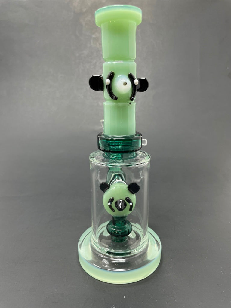 This 8" Green Panda Straight Percolator combines functionality with playful design. Crafted from durable borosilicate glass for heat resistance and longevity, it features a standard 14mm bowl for easy use. Available in assorted colors with a vibrant green option, this percolator delivers smooth filtration for an enhanced experience. A charming addition to your collection.