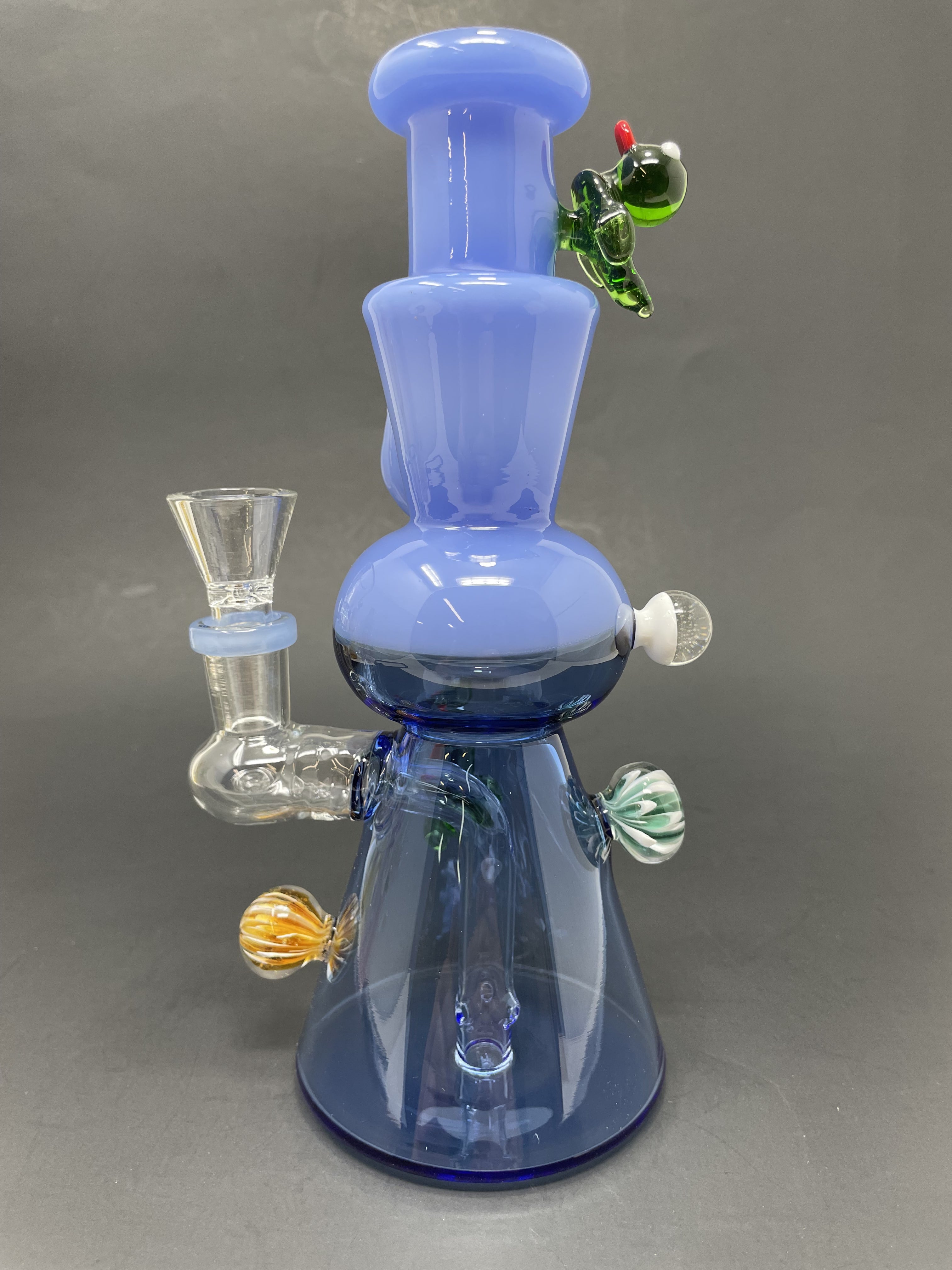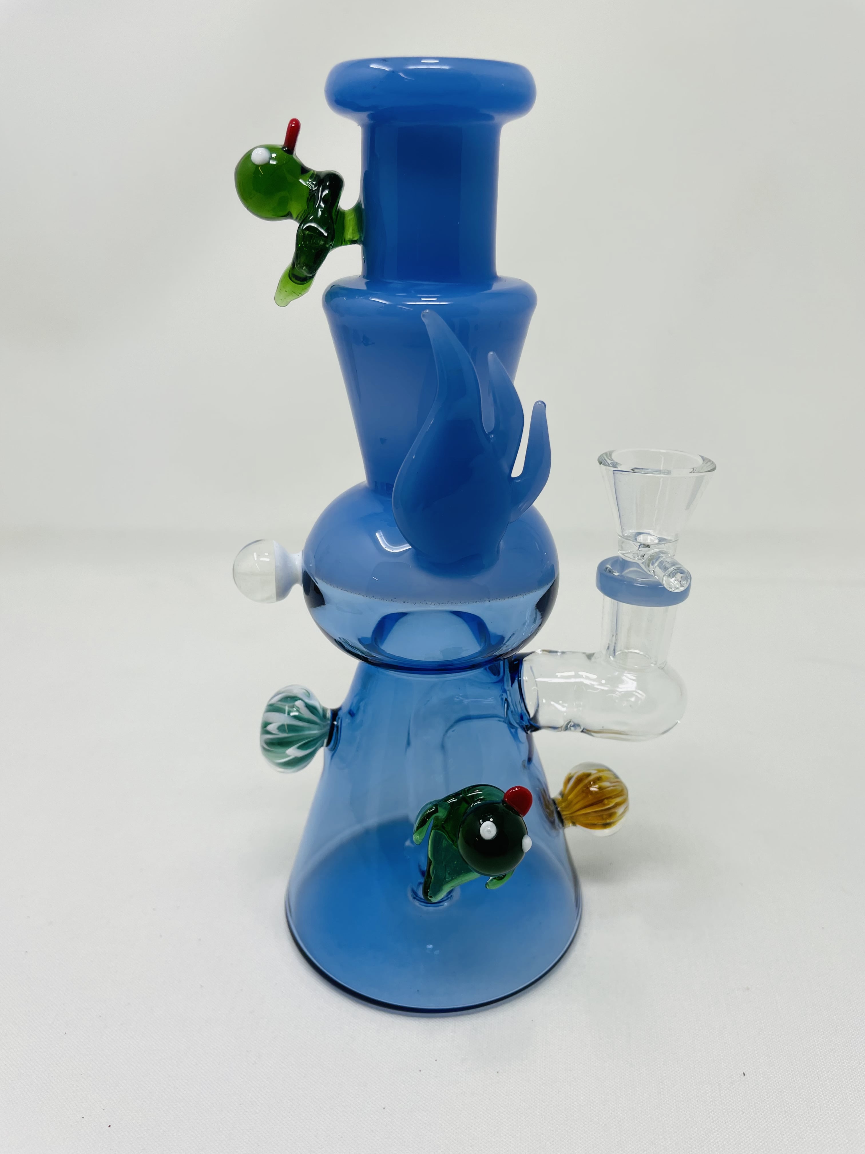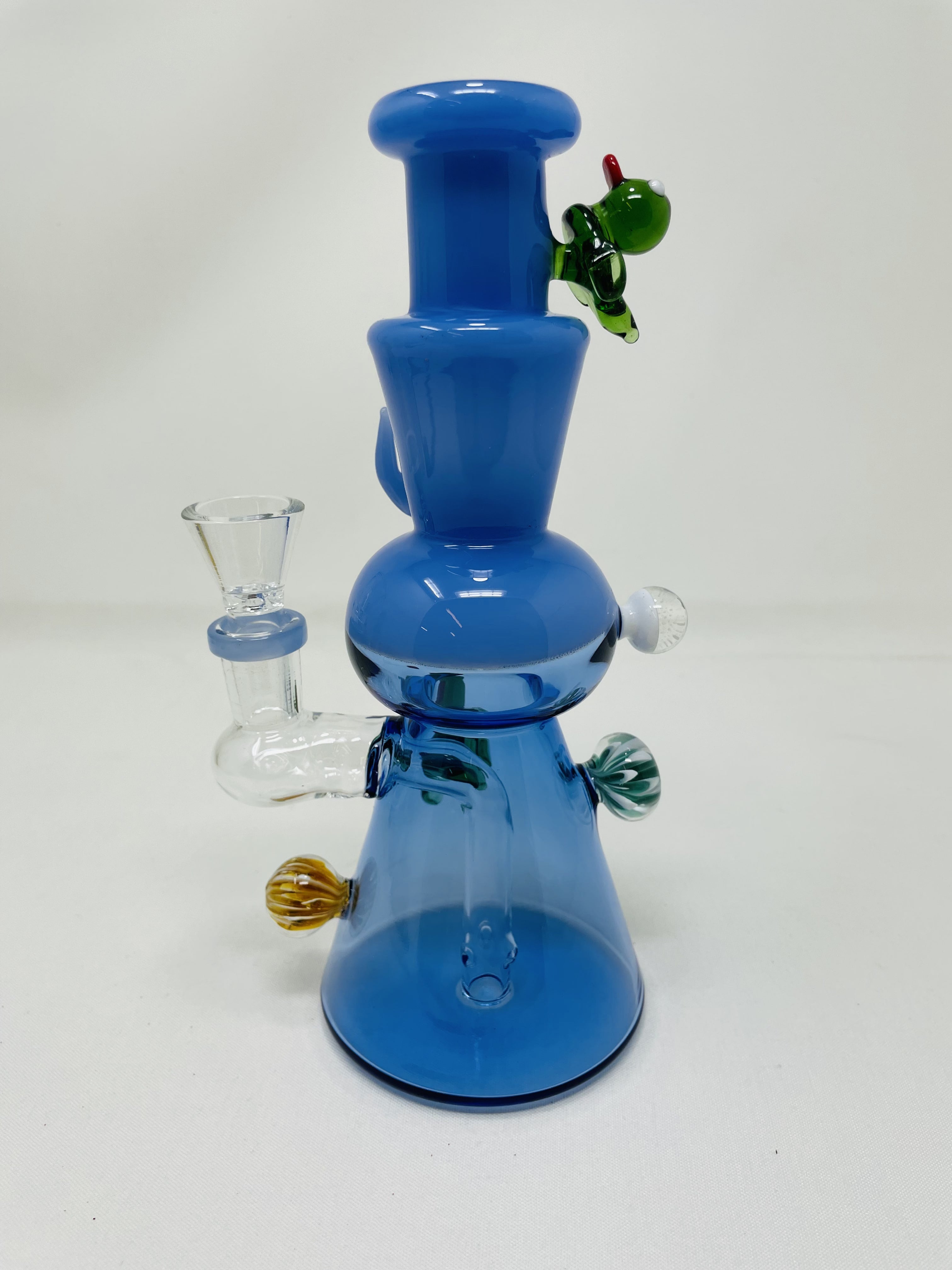 This 8" Premium Blue Crystal Duck Bong is hand made from durable borosilicate glass. The vibrant blue color adds a touch of personality to your smoking experience. Its compact size makes it perfect for on-the-go use. Experience smooth hits and style with this premium bong.