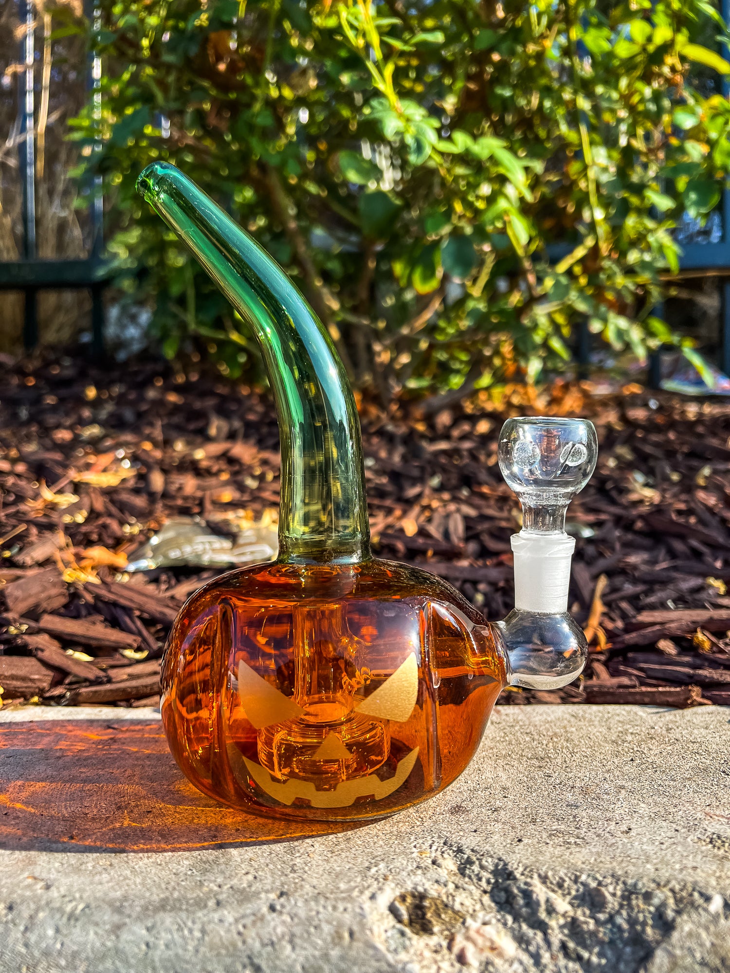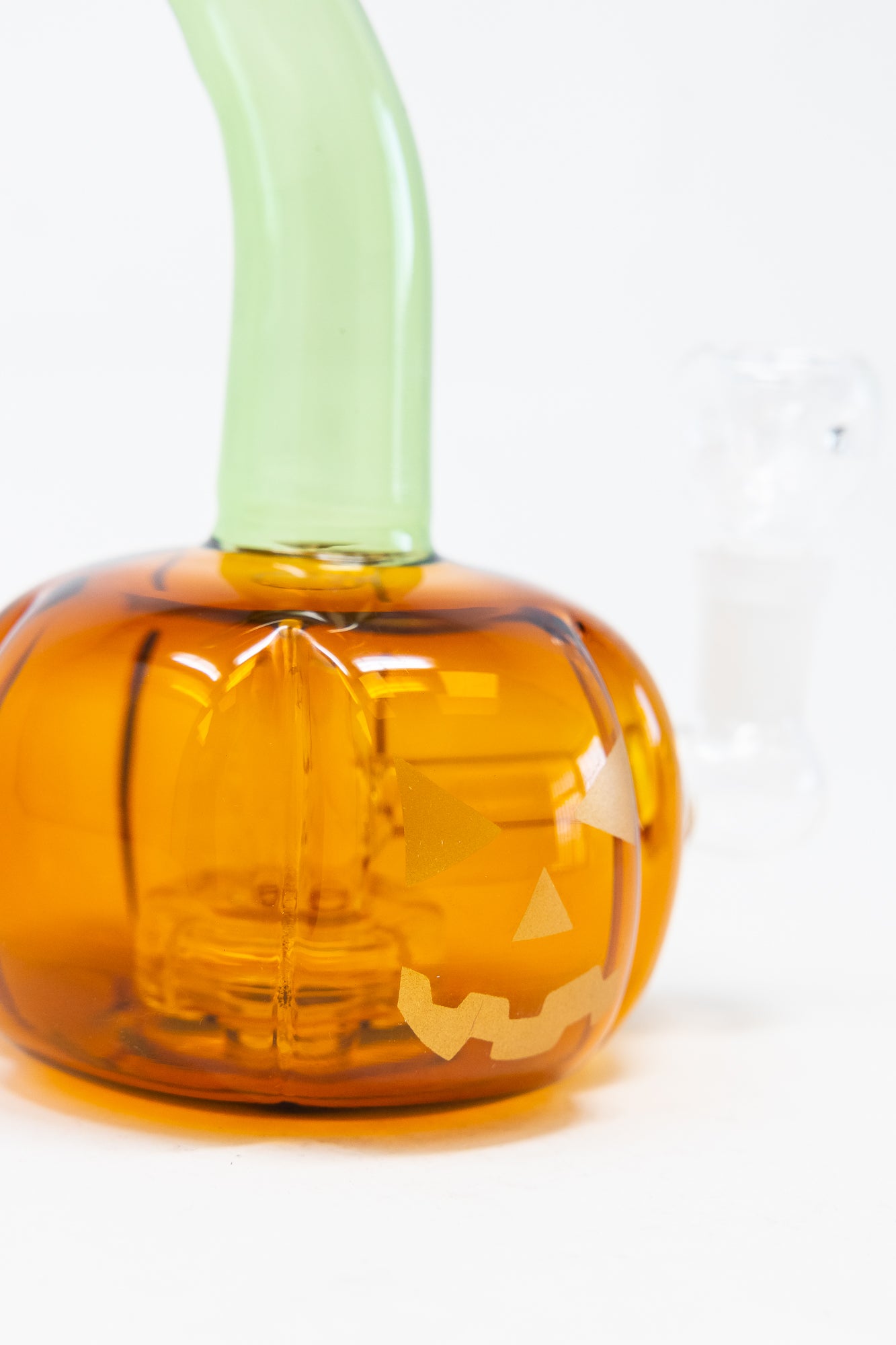 Introducing the 8" Pumpkin Bong - the perfect way to enjoy your favorite strains this Halloween! This bong features a shower bend neck with defused percolator, making it irresistible for any stoner. Plus, the pumpkin design is perfect for getting you into the Halloween spirit! Don't waste your time carving a bong out of a pumpkin that you'll just have to throw away - this bong is built to last and will become your go-to bong for all your future Halloween parties. Add this one-of-a-kind bong to your collection today!