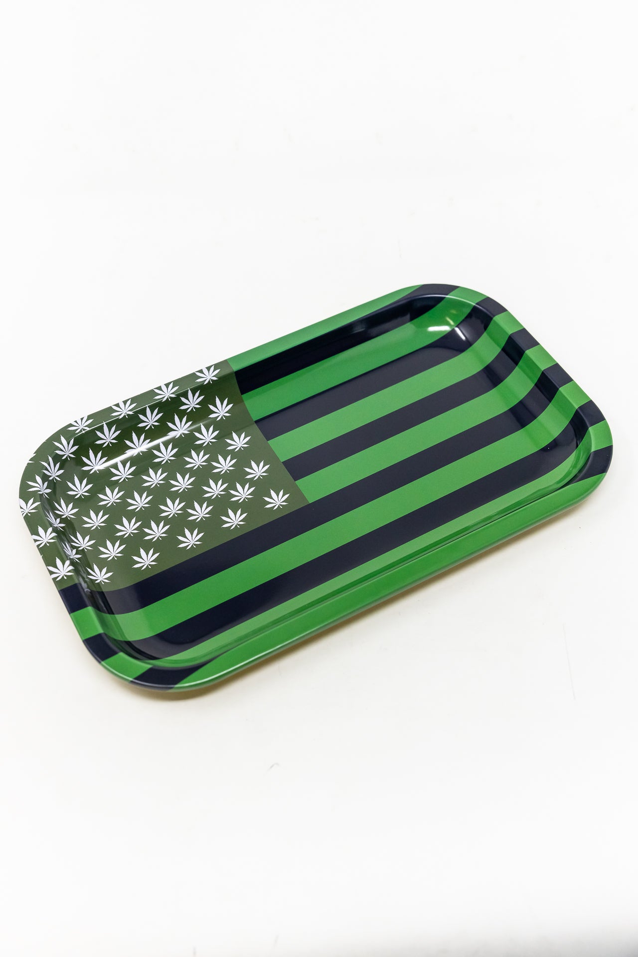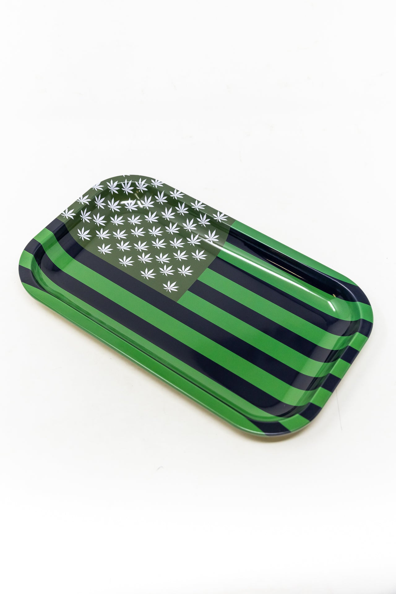 The Big-Green Flag Rolling Tray is a large and durable rolling tray for easy storage and transport of your smoking supply. Crafted from high-grade, lightweight aluminum, this tray features a team-green flag design for a stylish touch. Enjoy effortless convenience while storing and rolling your supplies.