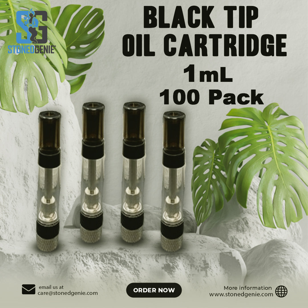 Oil Cartridge 1ML with a refillable design, now in a convenient 100 pack. Featuring a 510 thread for easy compatibility and a plastic tip for a smooth and comfortable vaping experience. Never run out of your favorite oils again!