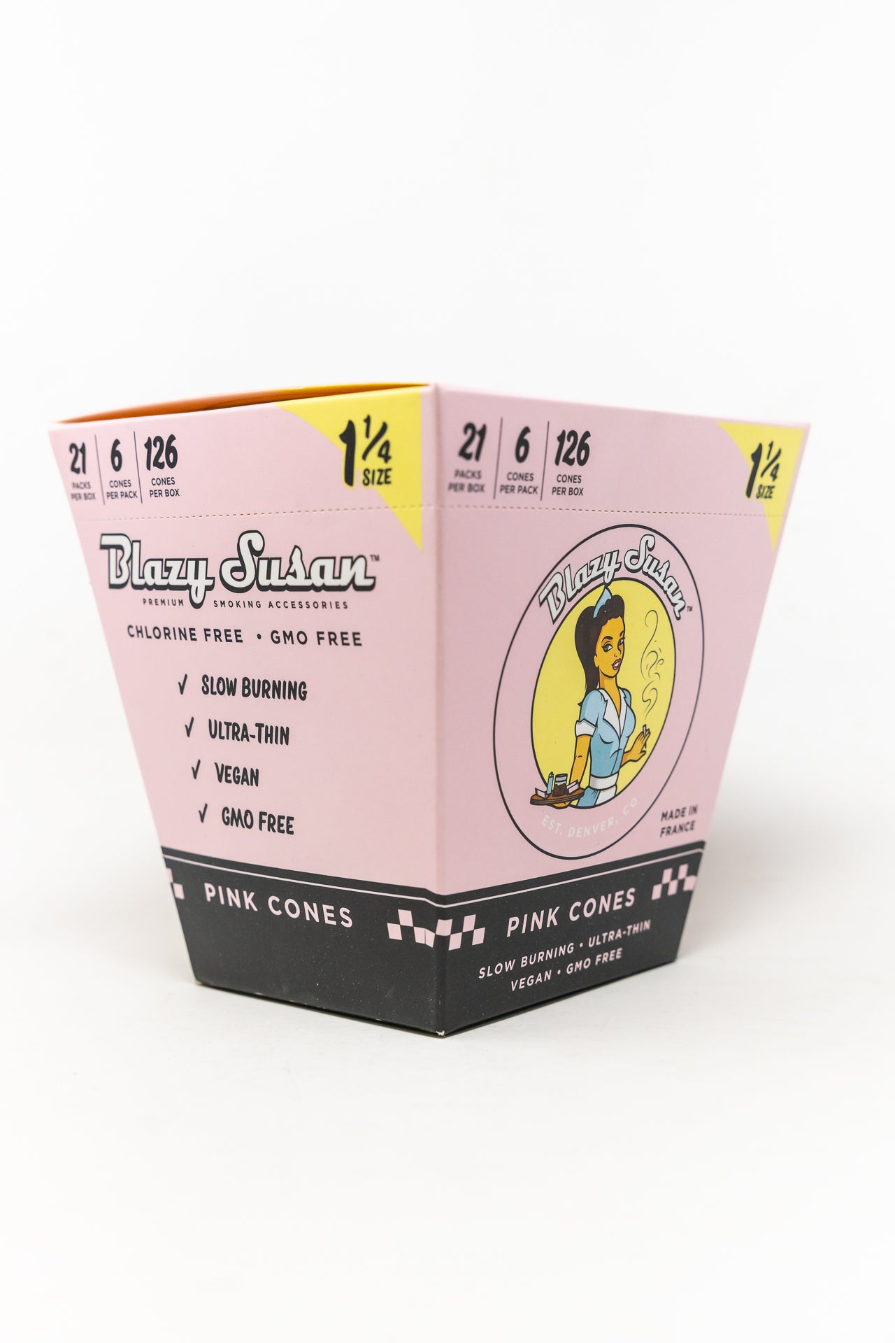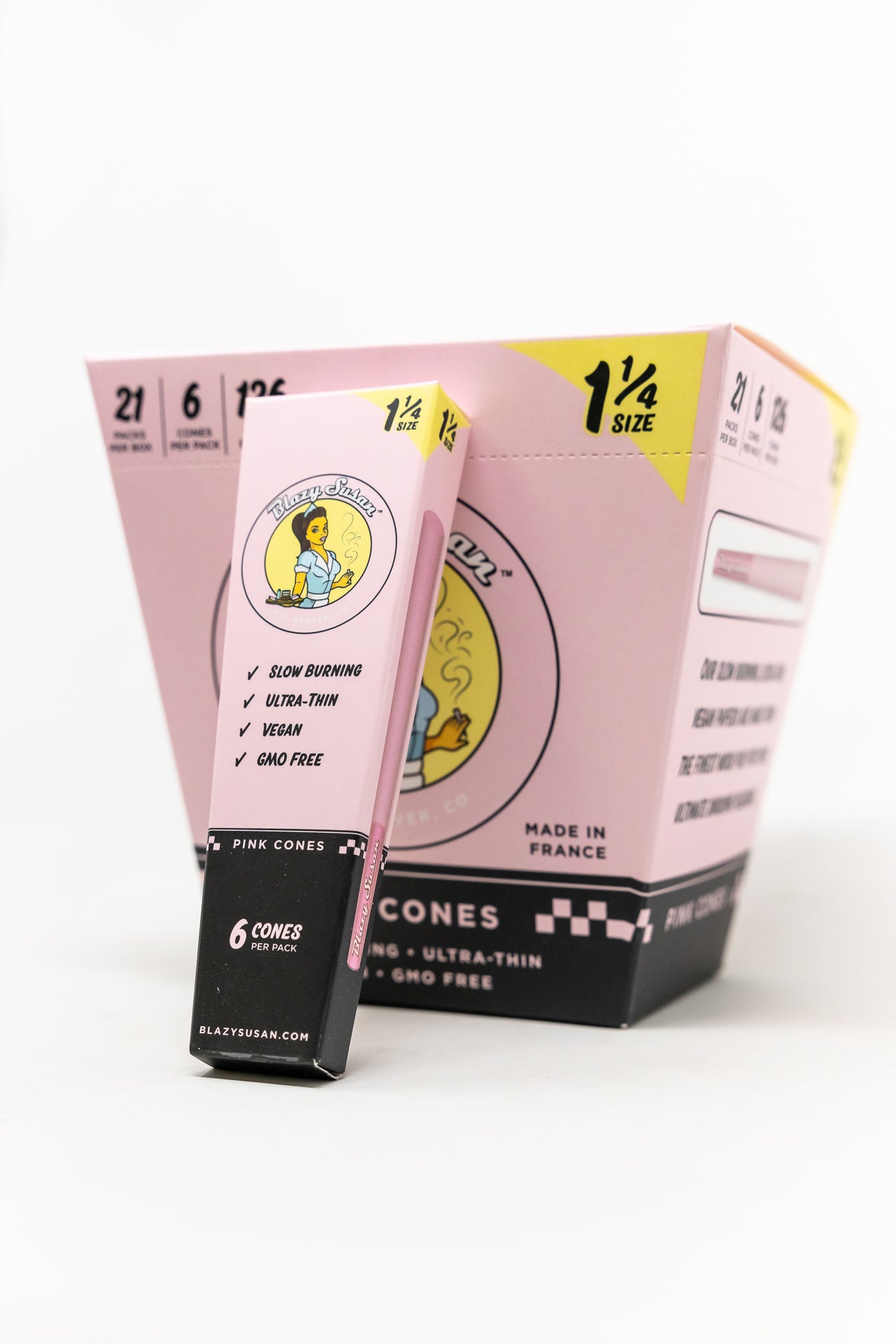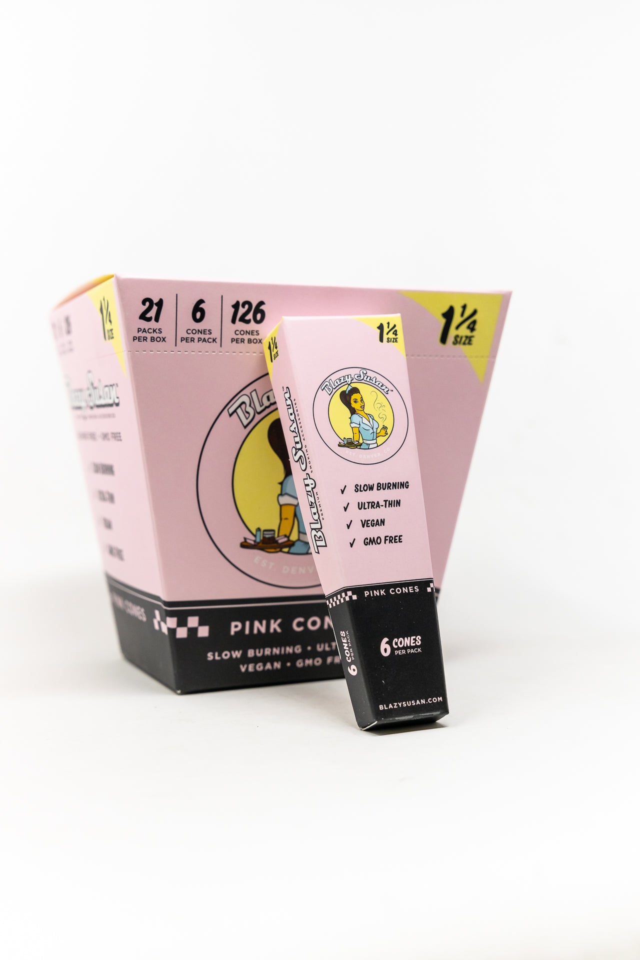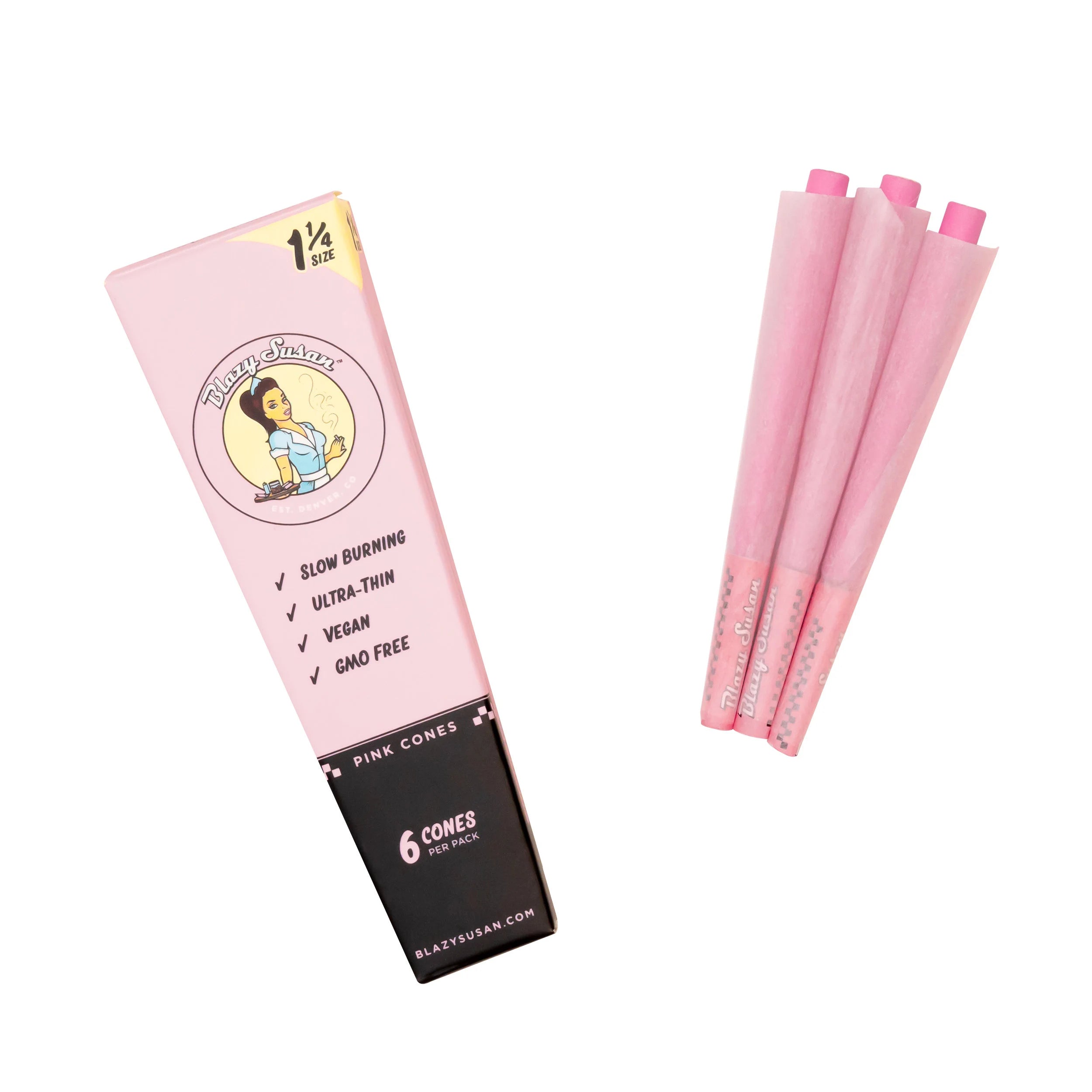 These 1 1/4 inch Blazy Susan Pink Cones are perfect for creating perfectly rolled herbal smoking cones. Crafted from the highest quality paper, these cones are machine-rolled for uniformity and density. They burn slowly and evenly for a great smoking experience.