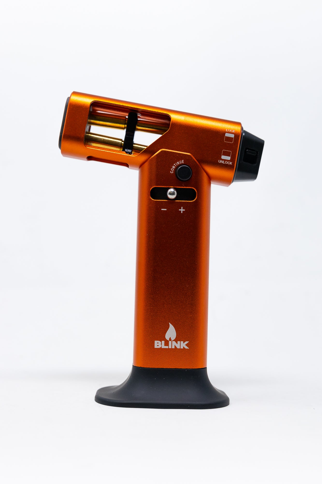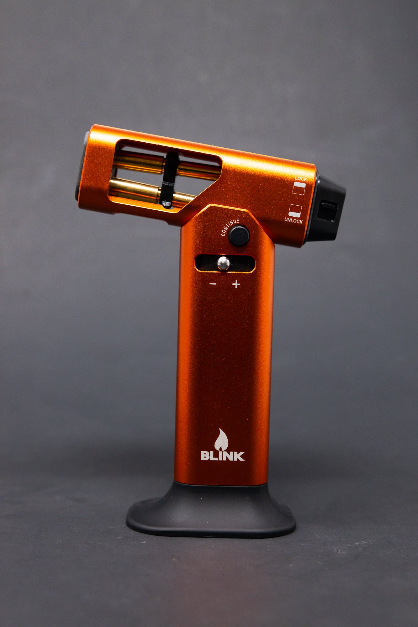 Introducing the Bretta Dab Torch - Orange. This torch is nothing short of premium quality and sophistication that will make you the envy of even your most stylish friends! Gleaming in an eye-catching orange color, this torch makes a statement wherever it is placed – on its own or attached to its delicately crafted tabletop.