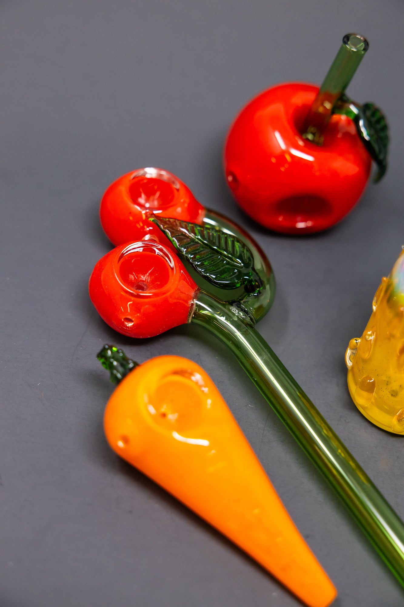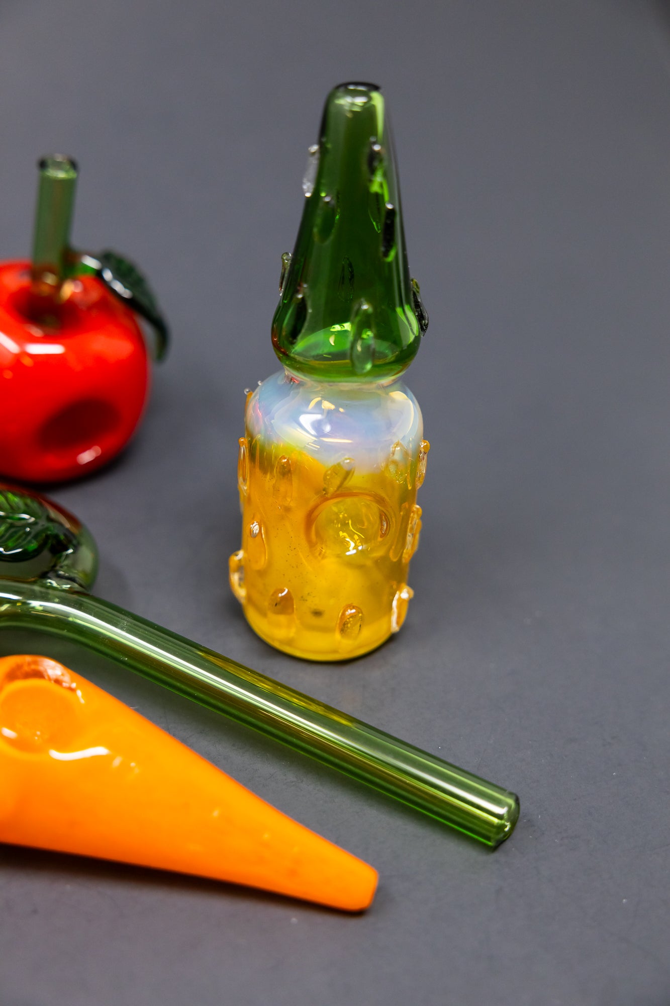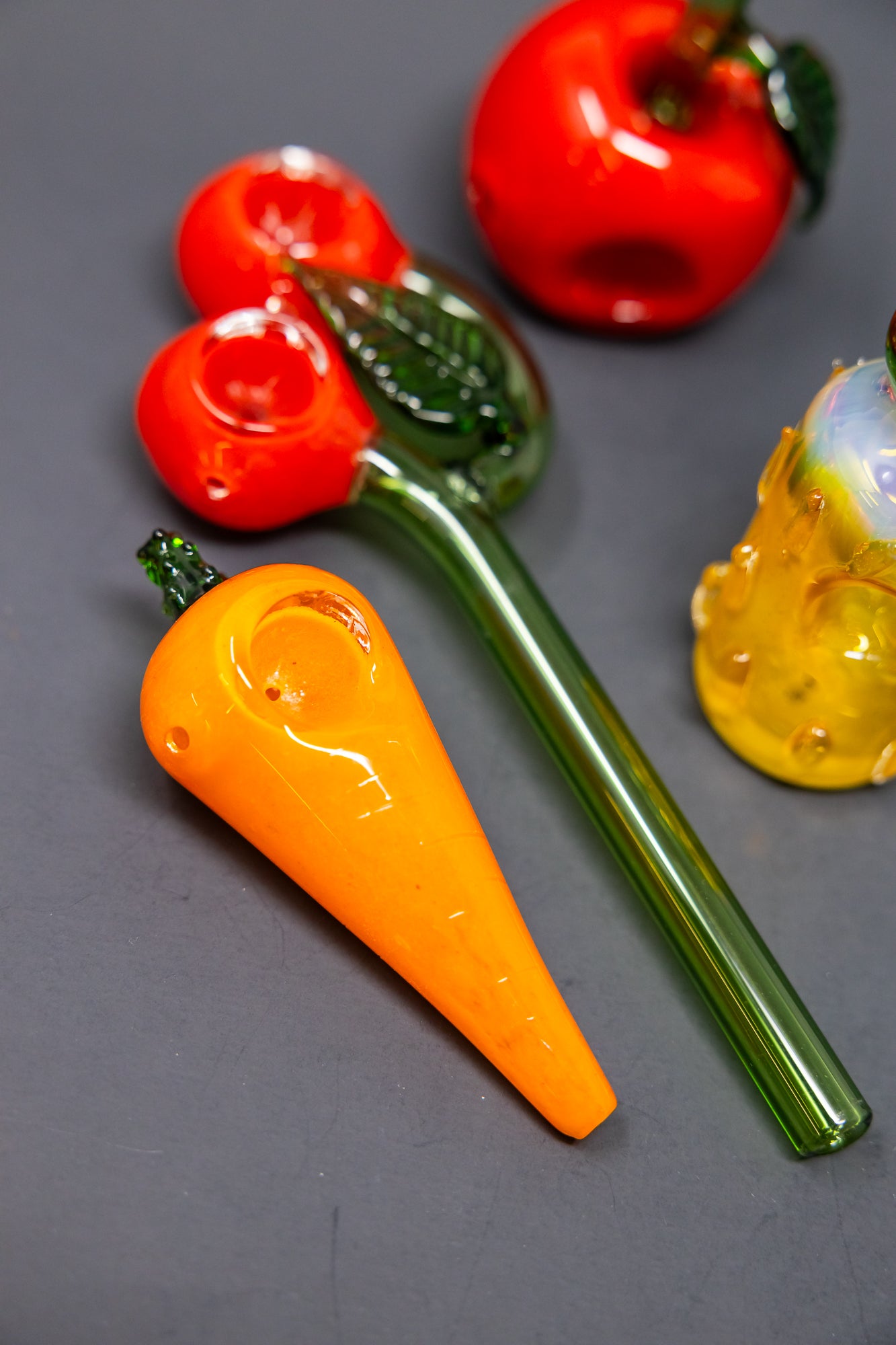 This 4pc bundle of hand pipes is perfect for any fruit lover! Each piece is hand made from Borosilicate glass, ensuring durability and quality. The assorted glass gives a unique touch to each pipe, making it one of a kind. Enjoy smoking your favorite herbs with this stylish and functional bundle.