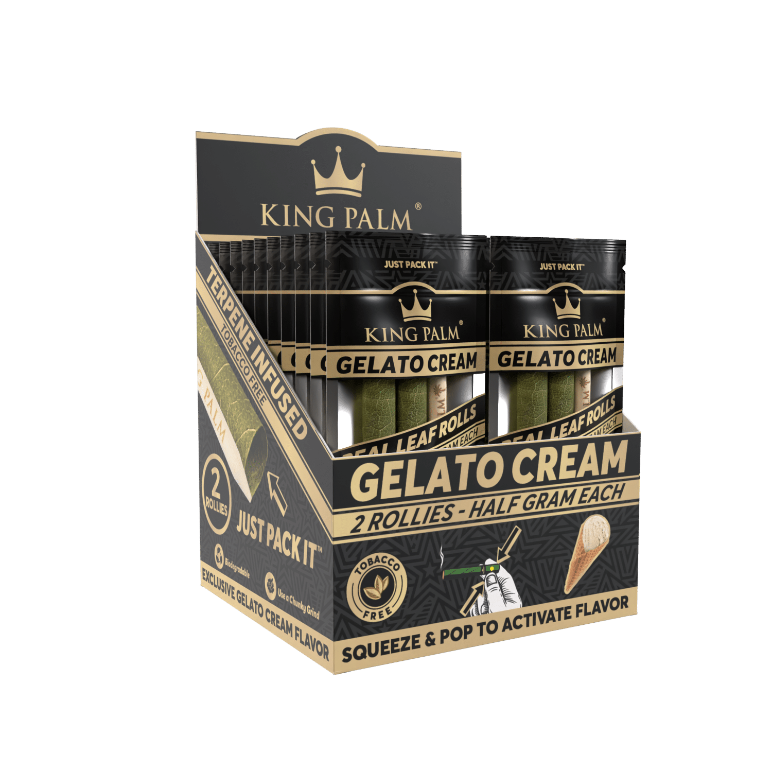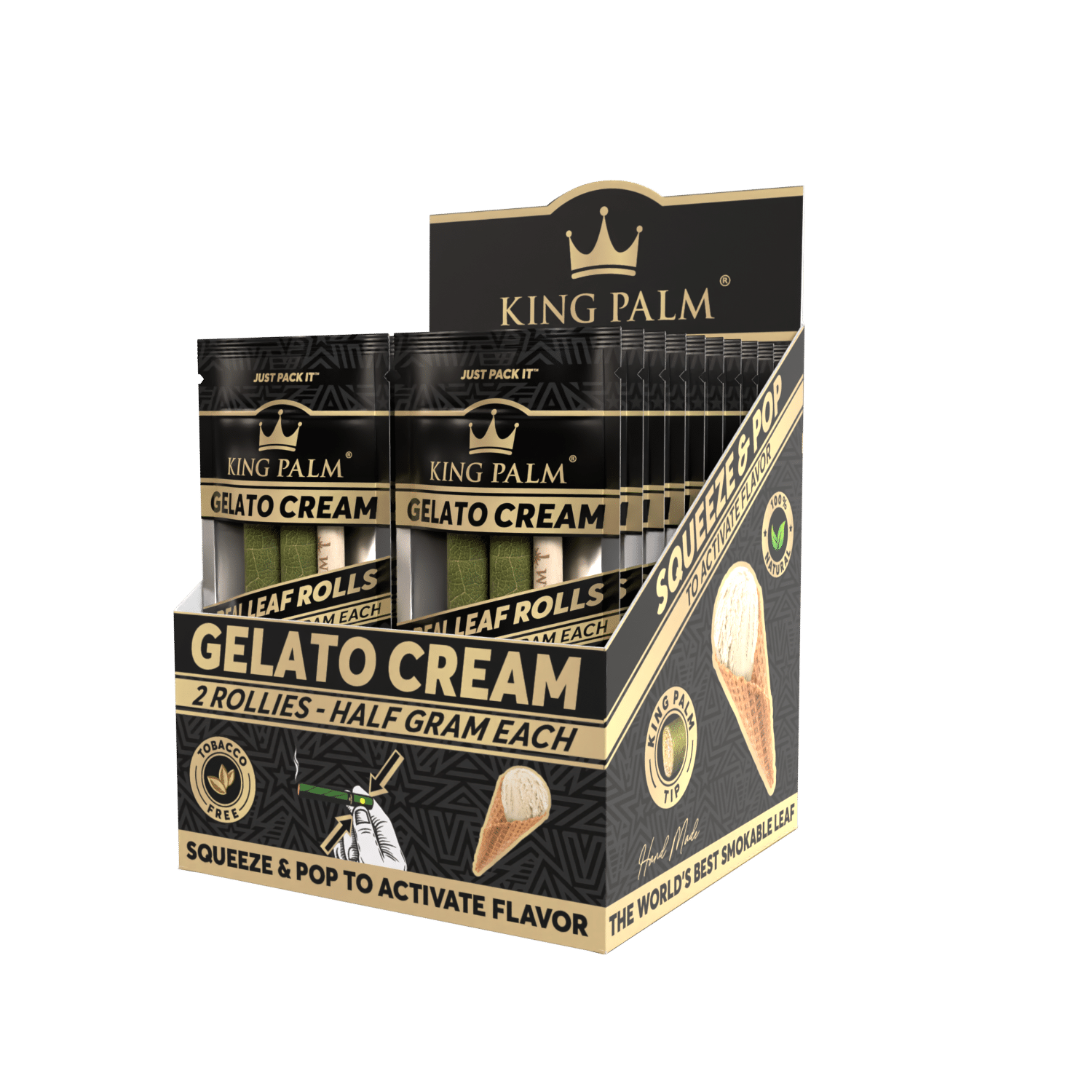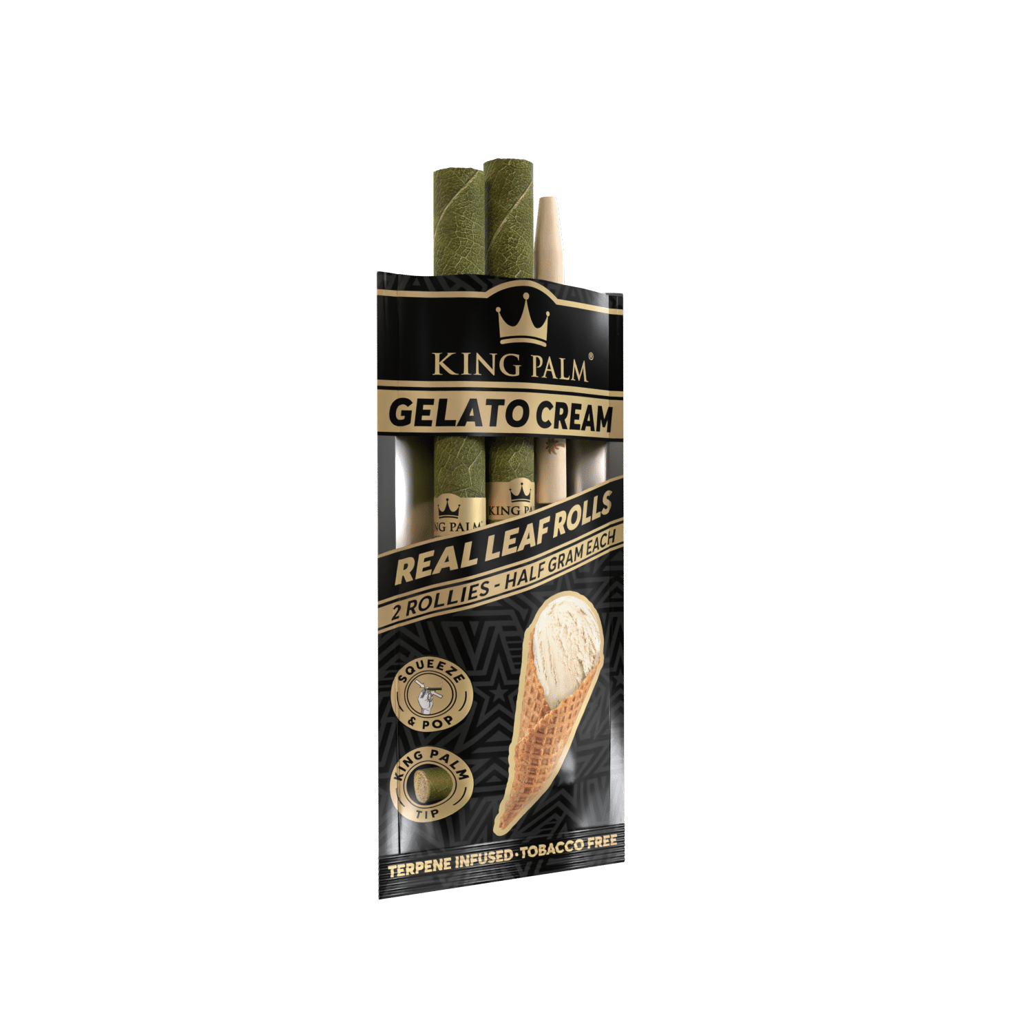 Enjoy slow-burning, flavorful hits with King Palm Gelato Cream Rollies. This convenient cone holds up to 1/2 gram and provides an enjoyable smoking experience with a smooth, creamy, and fruity flavor.