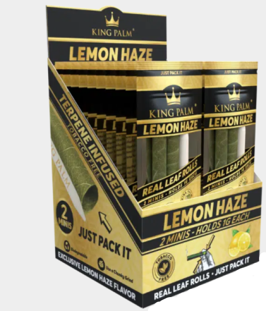 King Palm Lemon Haze mini leaf wraps offer a tobacco-free, all-natural smoking experience. Made from 100% biodegradable materials and infused with terpenes, they deliver a smooth, flavorful burn. These easy-to-roll wraps combine purity and convenience, making them a healthier, Eco-friendly alternative for enjoying your favorite herbs.