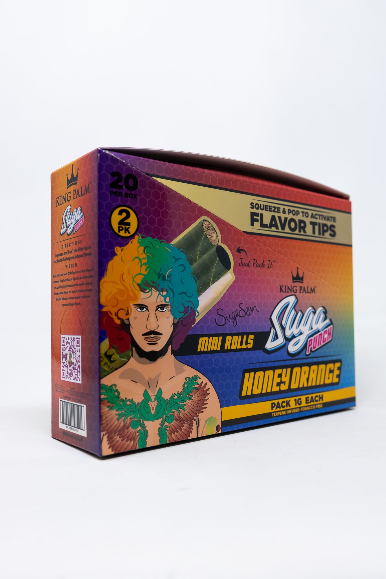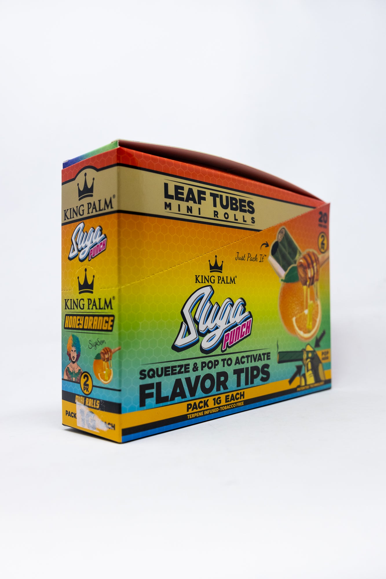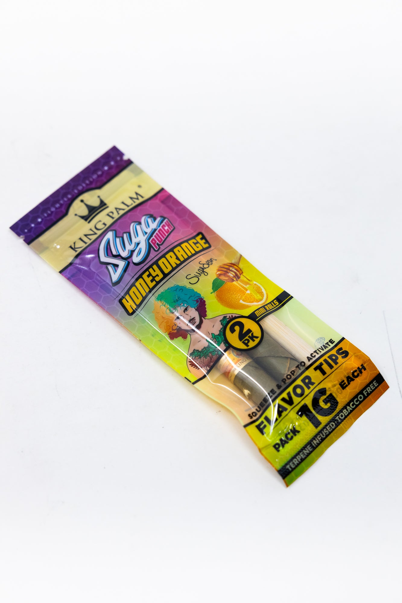 The King Palm Mini Rolls (Honey Orange) provide a perfect way to enjoy your herbs. Each Mini Roll is terpene infused for an enhanced aroma and flavor, and holds up to 1 gram of herbs. Along with the two rolls, a bamboo packing stick is included. Enjoy the perfect king-sized smoke with these Honey Orange Mini Rolls.