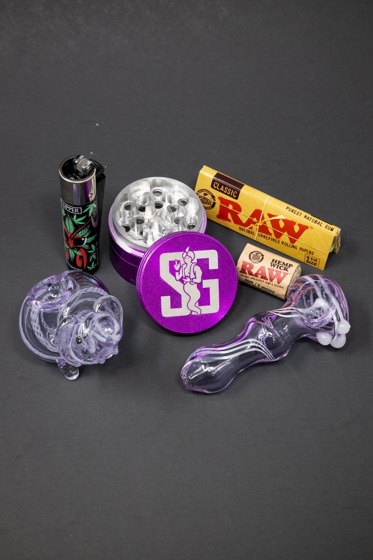 Stoned Genie Lavender Elephant Combo Set is here! This is perfect for any Lavender/Purple lover looking to upgrade their smoking gear at an affordable price. We have hand picked the best items and paired them together for this amazing combo set. Buying in bulk saves you money and we already included everything you need!