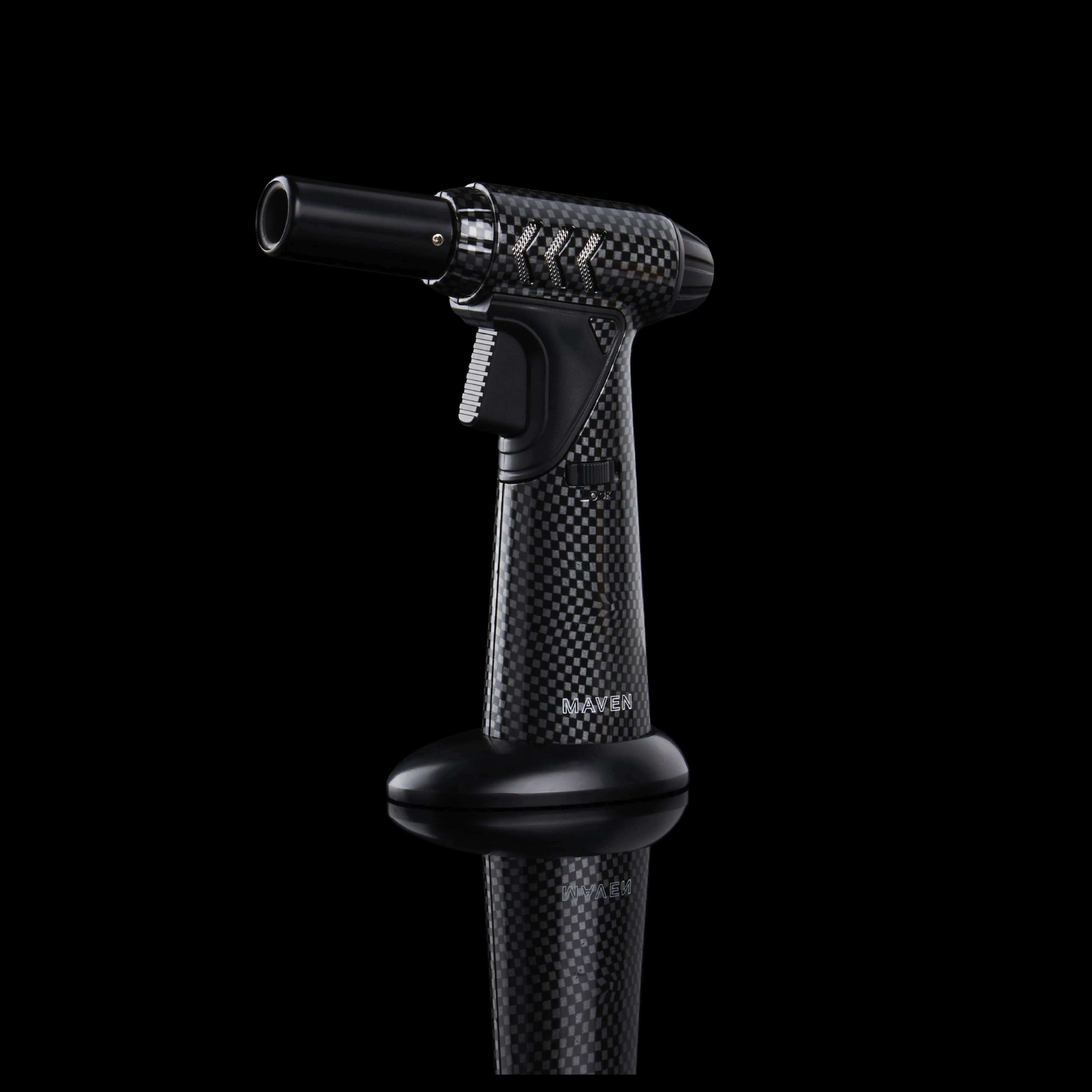 The Maven Tornado / Carbon Fiber Dab Torch offers a reliable flame with enhanced safety features: the Safety Lock ensures uninterrupted use and the Ignition Hold provides a good angle for dabbing. Experience a secure dabbing experience with this high-quality torch.