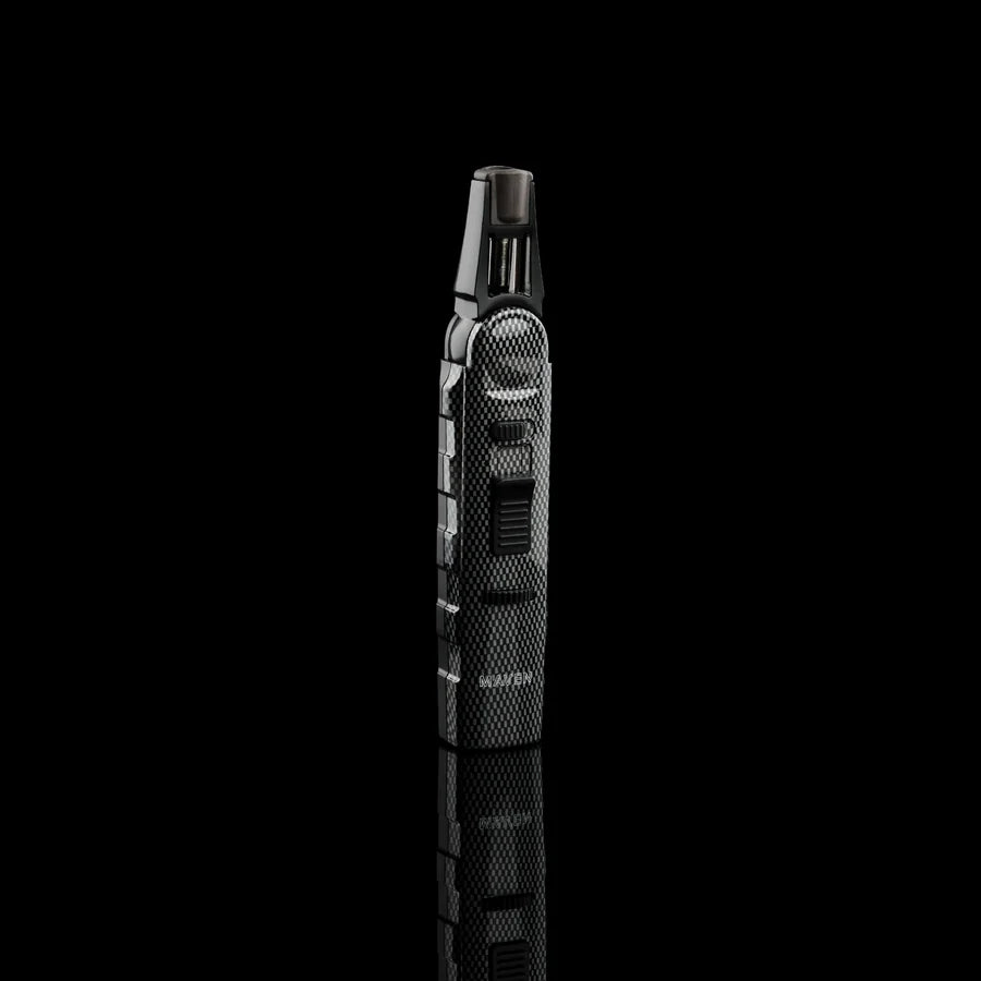 The Maven Model 7 Carbon Fiber Dab Torch is an advanced butane torch designed for smoking concentrate. Its adjustable angle feature allows for a 2 inch angle twist of up to 45 degrees left or right, and the Safety Lock/ Ignition Hold helps ensure safety of the user. Refillable with butane, this torch gives you the convenience of long-lasting use.