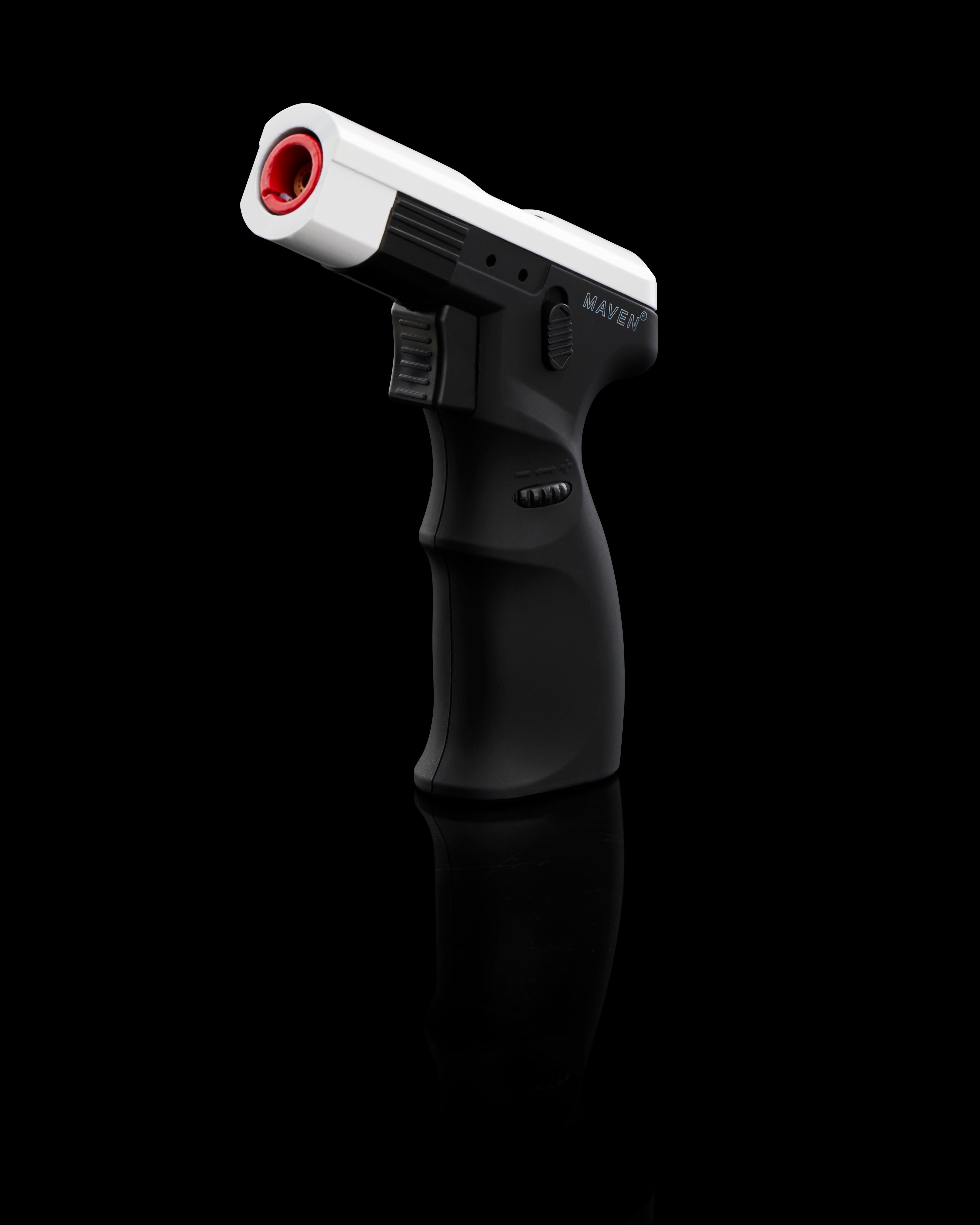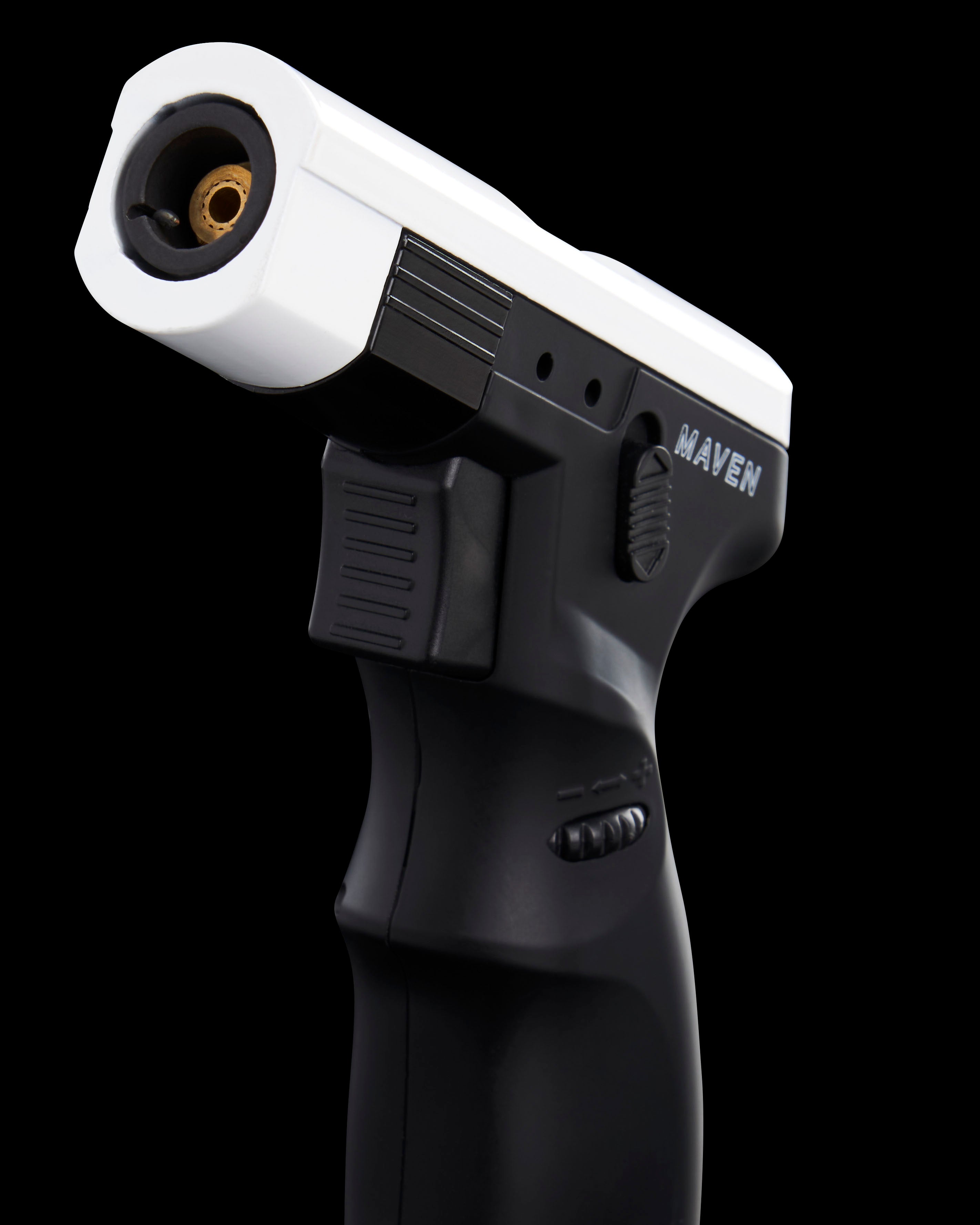 The Maven Model K Dab Torch is designed for precision dabbing. Its unique gun shape and grip make it easy to maneuver with accuracy. The torch also features a good angle, allowing you to approach your pieces from any direction. With these features, you can have confidence that you are targeting the exact spot you want.
