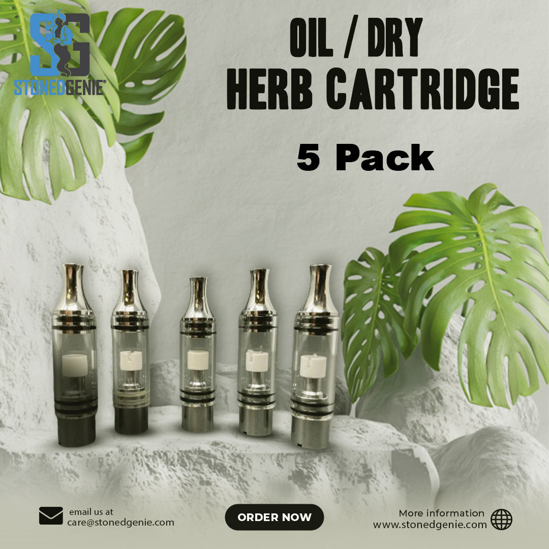 Experience the convenience and versatility of our Oil / Dry Herb Cartridge - 5 pack! Interchangeable coils make it easy to switch between oil or dry herb for your vaping needs. Comes with a powerful Vision Battery and a dry herb coil for a versatile and long-lasting experience.