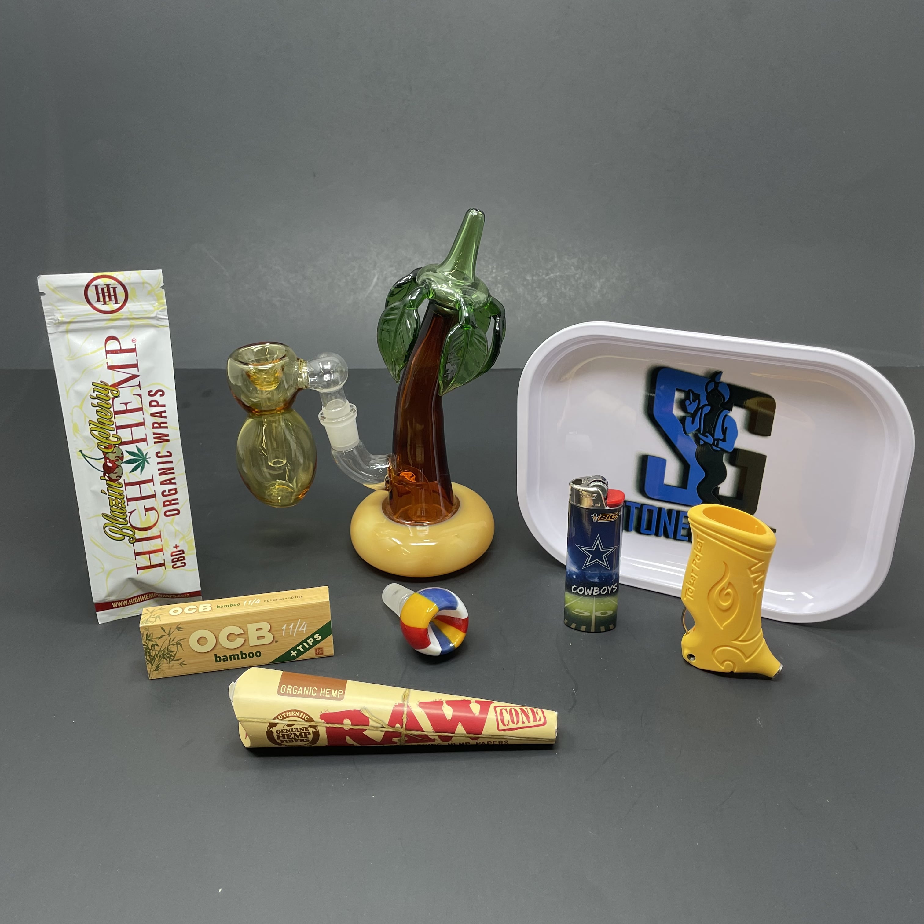 The Palm Tree Combo is the perfect bundle for any smoker! Featuring an Ash Catcher to keep your smoke clean, Raw Organic Cones for a natural experience, and a Toker Poker for easy packing. Plus, enjoy OCB Tips and Papers, a Mystery Lighter, and a Blazin Cherry Wrap for a hint of flavor.